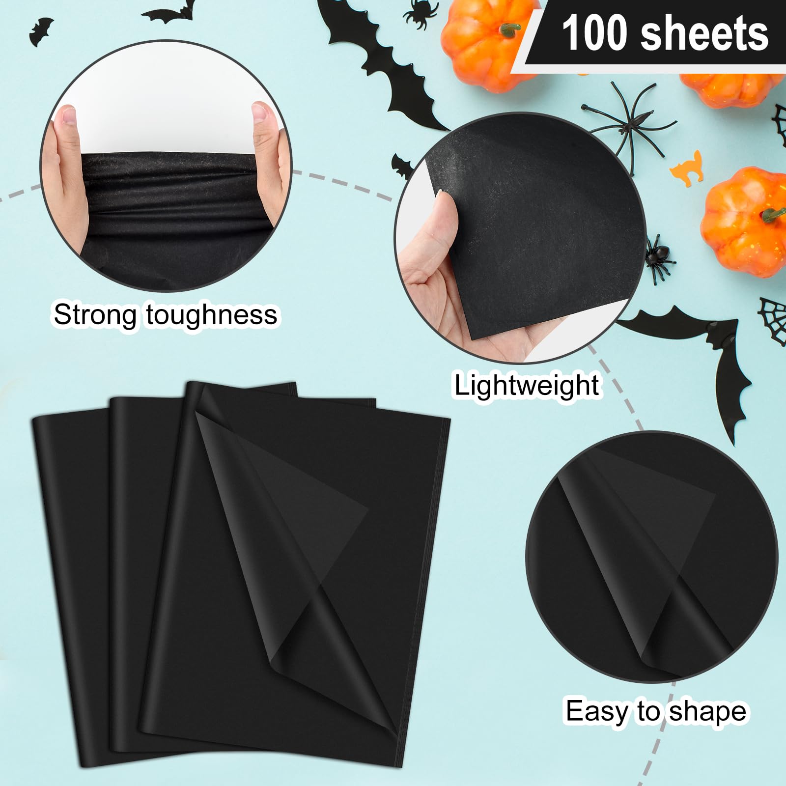 You Will Get: 100 sheets of black wrapping tissue paper bulk, enough to meet your daily and party decorations needs