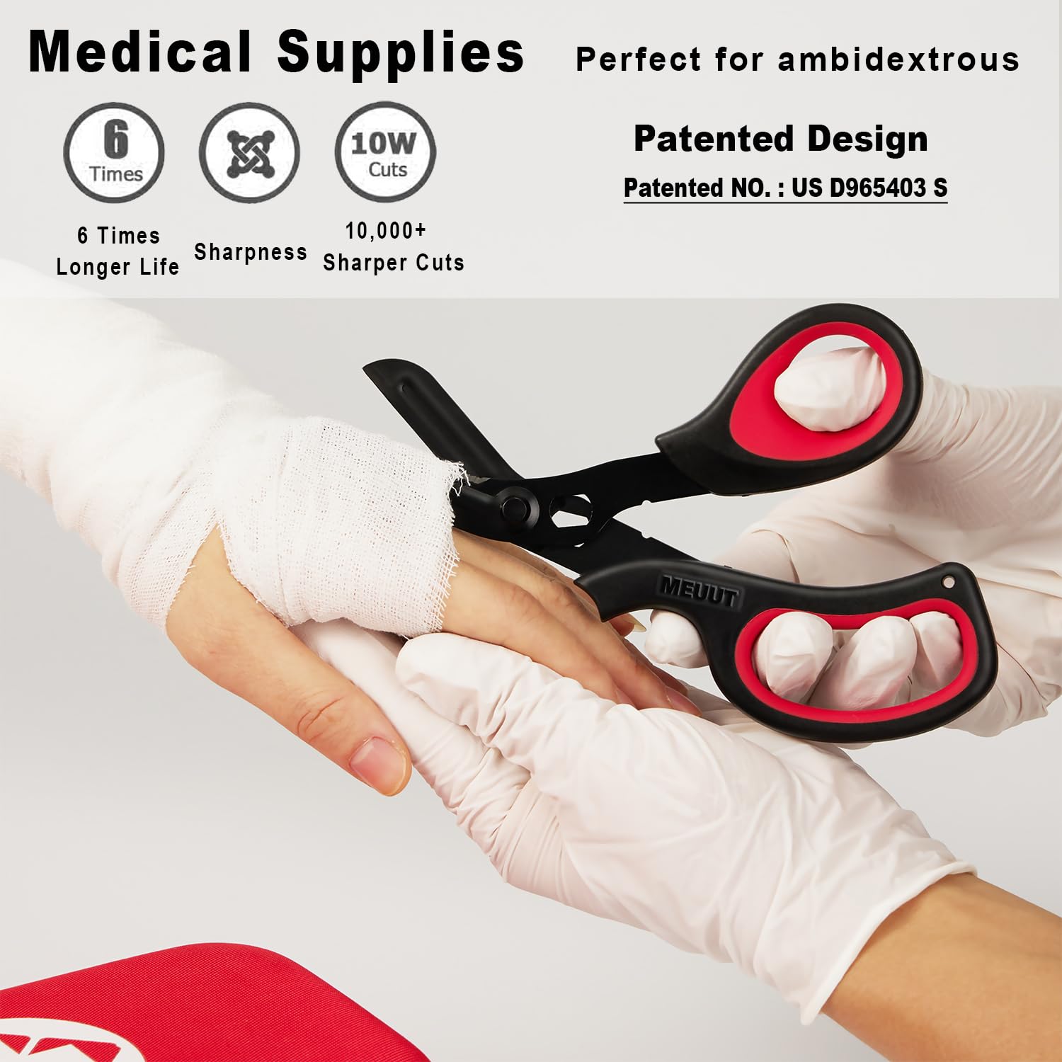 【PATENTED MEDICAL SCISSORS】: Cut anything safely and efficiently with these sharp, professional grade medical scissors. The upgraded blades material is stainless steel 440, with higher strength and hardness compared to others, to ensure MEUUT medical scissors much sharper and durable for long-lasting time. Forging high-density stainless steel blades with 3 times heat treatments to ensure scissors much sharper and durable.