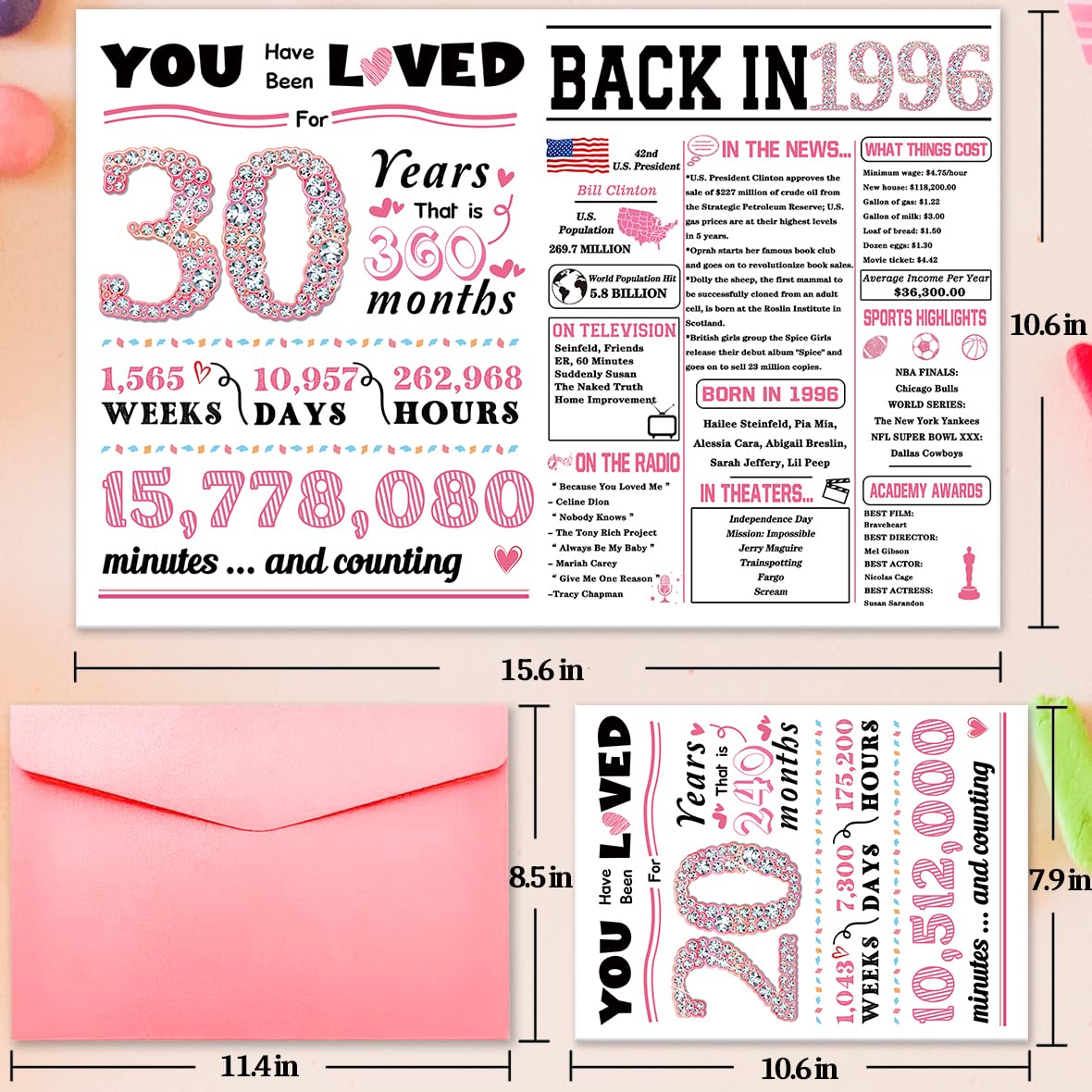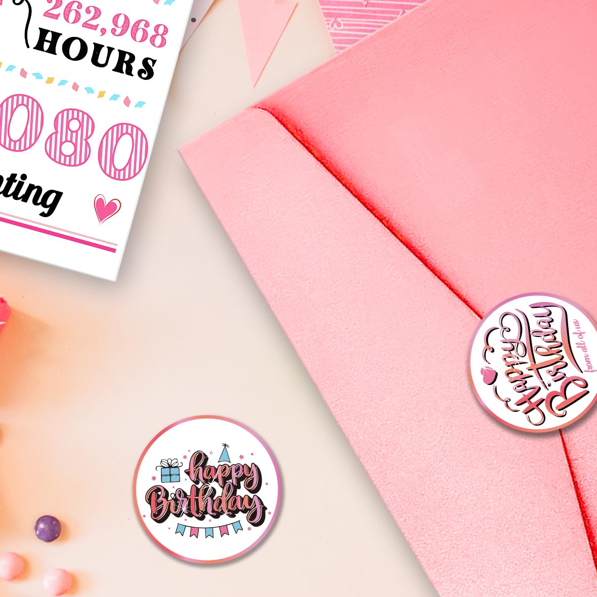 30th Birthday Decorations The set includes a high-quality pink envelope, 2 sealing stickers, and a protective bag—perfect for gifting. The card itself (Size: 10.6 x 7.9 inch after folding) is made from superior 350gsm thick paper, giving it a standout, decorative feel for the celebration.