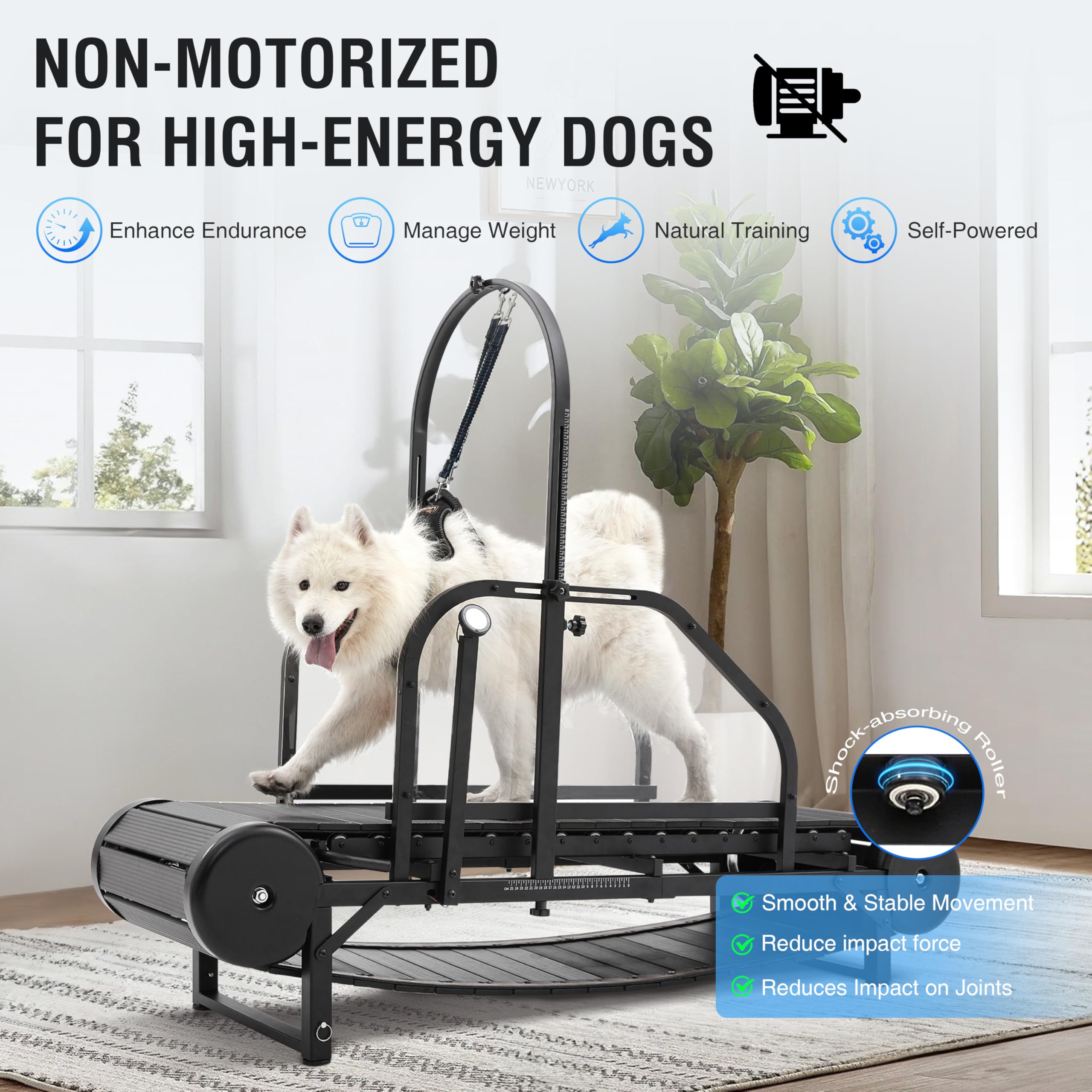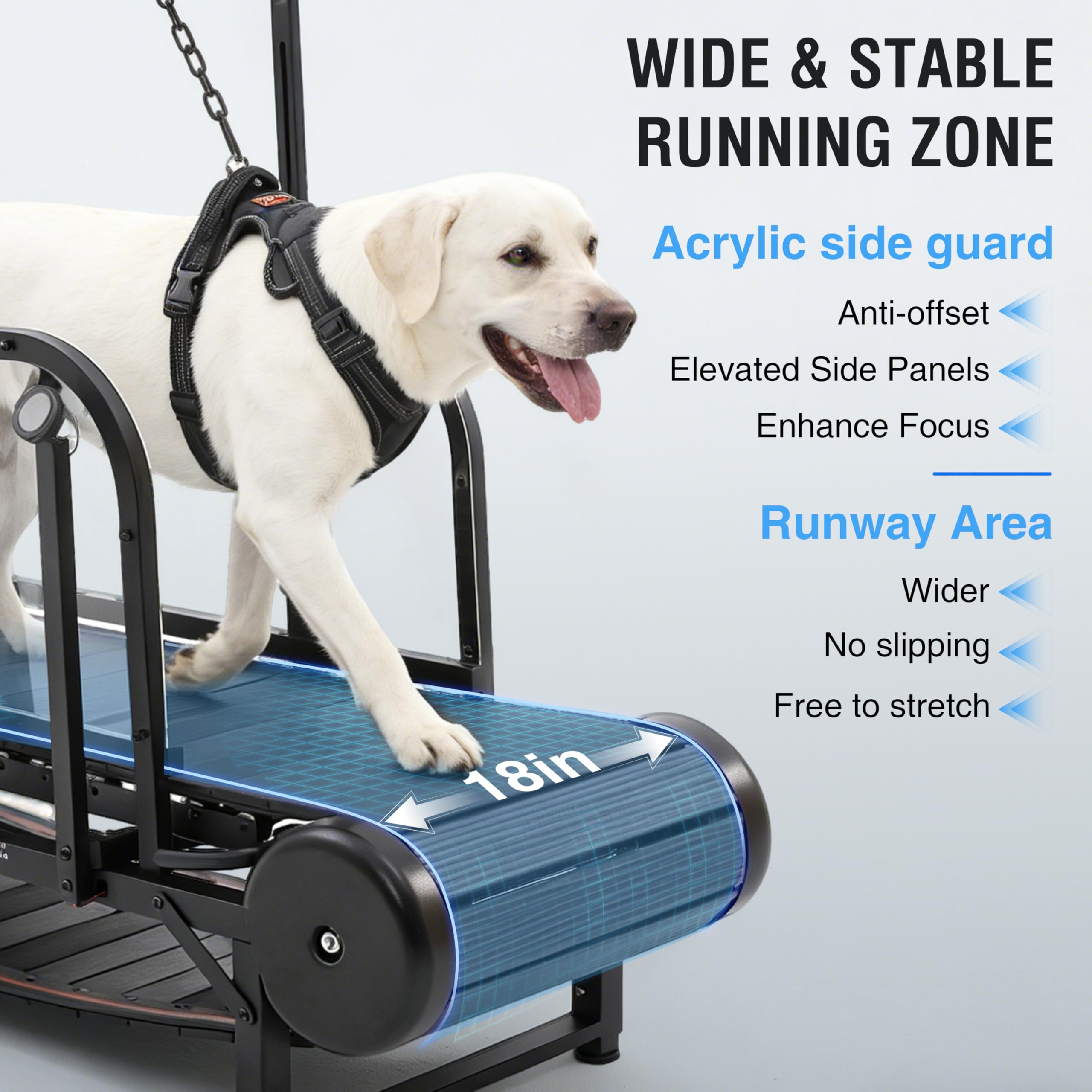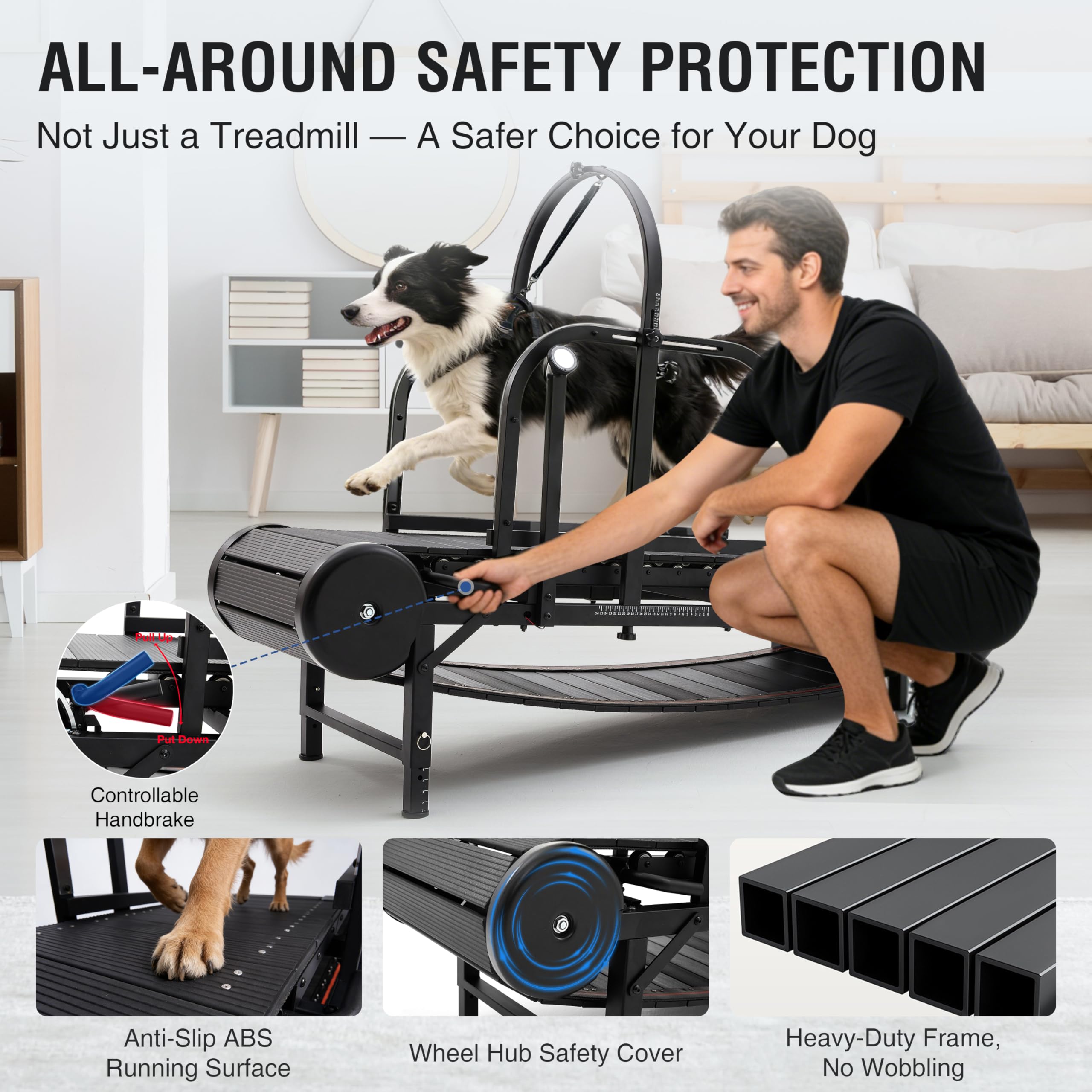 【Non-Motorized & Safe Design】 There is no need to worry that the dog cannot adapt to the treadmill speed. The non-electric design allows the dog to freely drive the track and the track speed is determined by the dog. The noise-reducing, high-quality and smooth rollers make the track run easier and provide a safe and comfortable exercise environment for the dog.