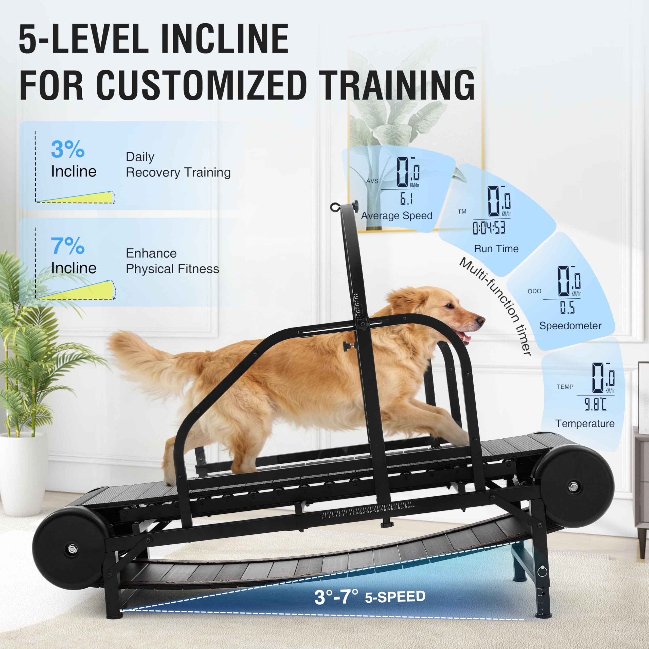 【Customizable Training with Adjustable Resistance】 Different slope resistance adjustments can adapt to dogs of different weights. The track inclination can adjust the dog's running speed, allowing the dog to transition from a stable state to a sprint state. This is a gym designed for energetic dogs, with a customized exercise intensity plan, and a timer that can record exercise status and speed, effectively promoting the healthy growth of dogs.