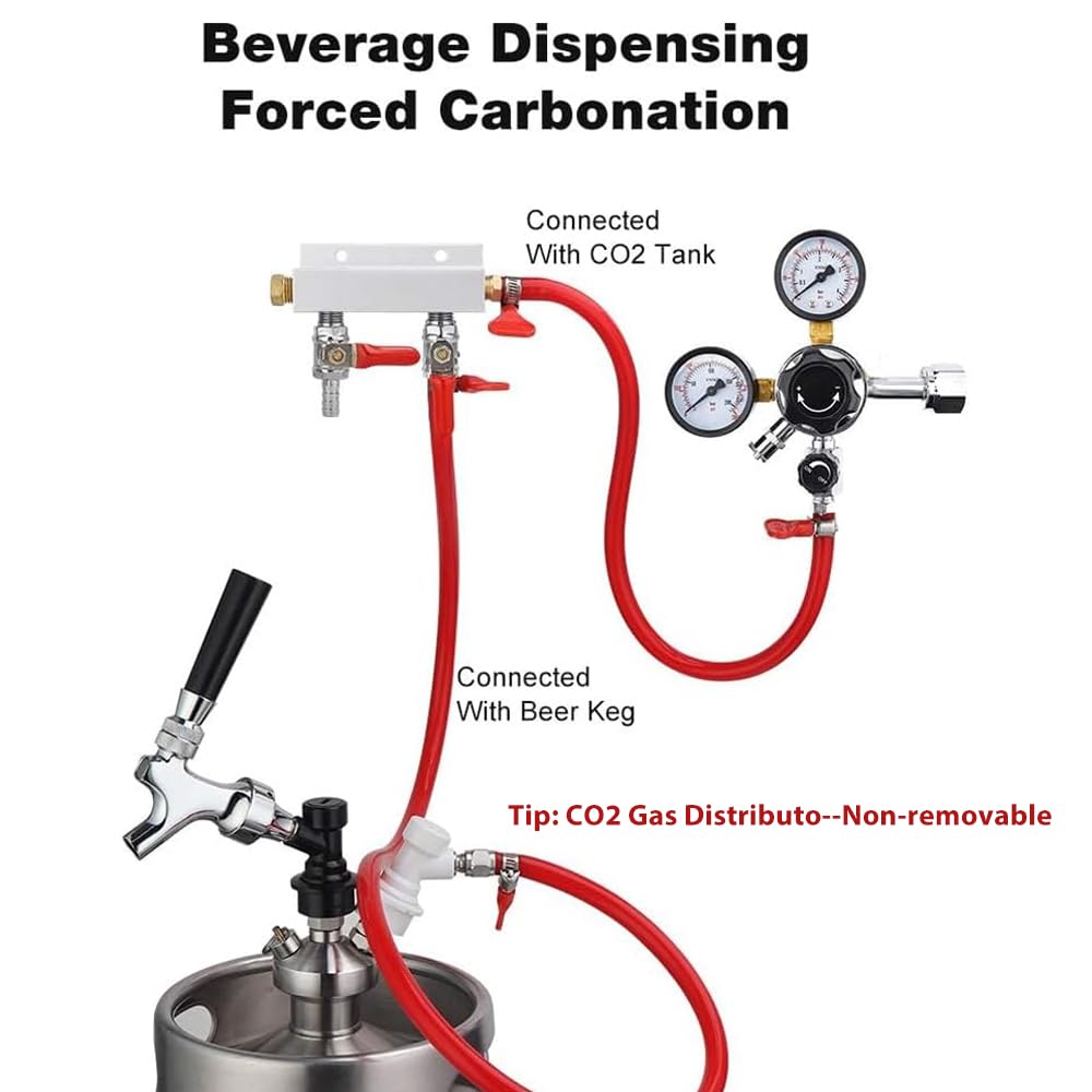 Add to Cart With No Regret: FERRODAY 2-way co2 distributor can let you carbonate 2 kegs at the exact same pressure setting with a co2 regulator. Different pressures cannot be assigned separately to each keg. 2-way gas manifold is perfect for home brewers, bar owners, and breweries to easily split gas for beverage dispensing and forced carbonation. We are committed to offering technical service, this CO2 gas distributor will be a helpful addition to your brewing accessories