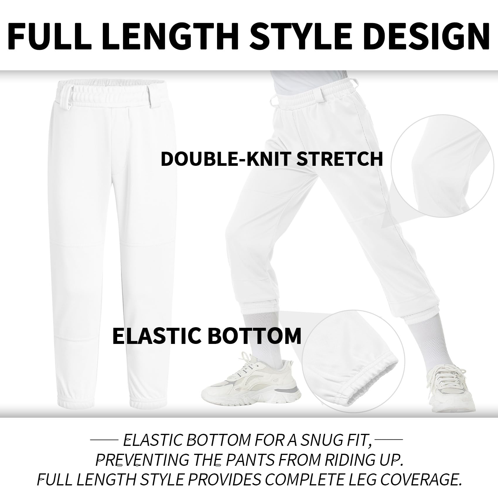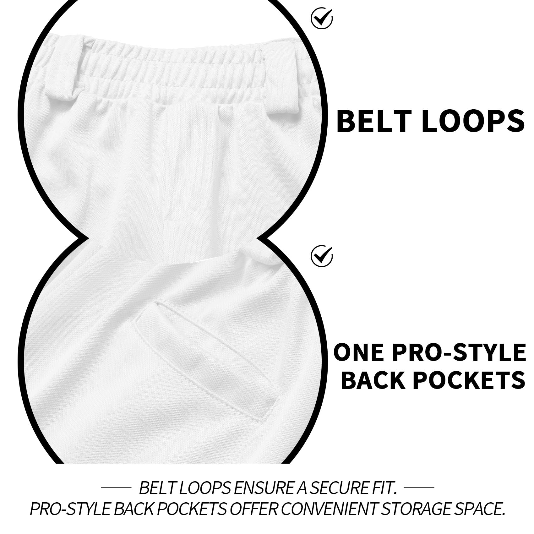Waistband: The high elastic waistband and belt loops keep your softball pants from riding up or down and are great for kids getting started in T-Ball.