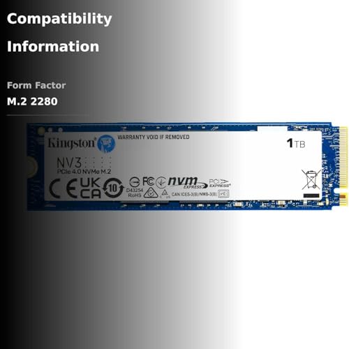 Kingston’s NV3 PCIe 4.0 NVMe SSD is a next-gen storage solution powered by a Gen 4x4 NVMe controller, delivering read/write speeds up to 6,000/5,000MB/s*. It offers lower power consumption and reduced heat, optimizing your system's performance without compromising value. The compact, single-sided M.2 2280 (22x80mm) design expands storage up to 4TB**,*****, conserving space for other components. Experience NVMe speeds with NV3. Available in capacities from 500GB – 4TB**,***** to give you all the space you need for applications, documents, photos, videos, games and more.