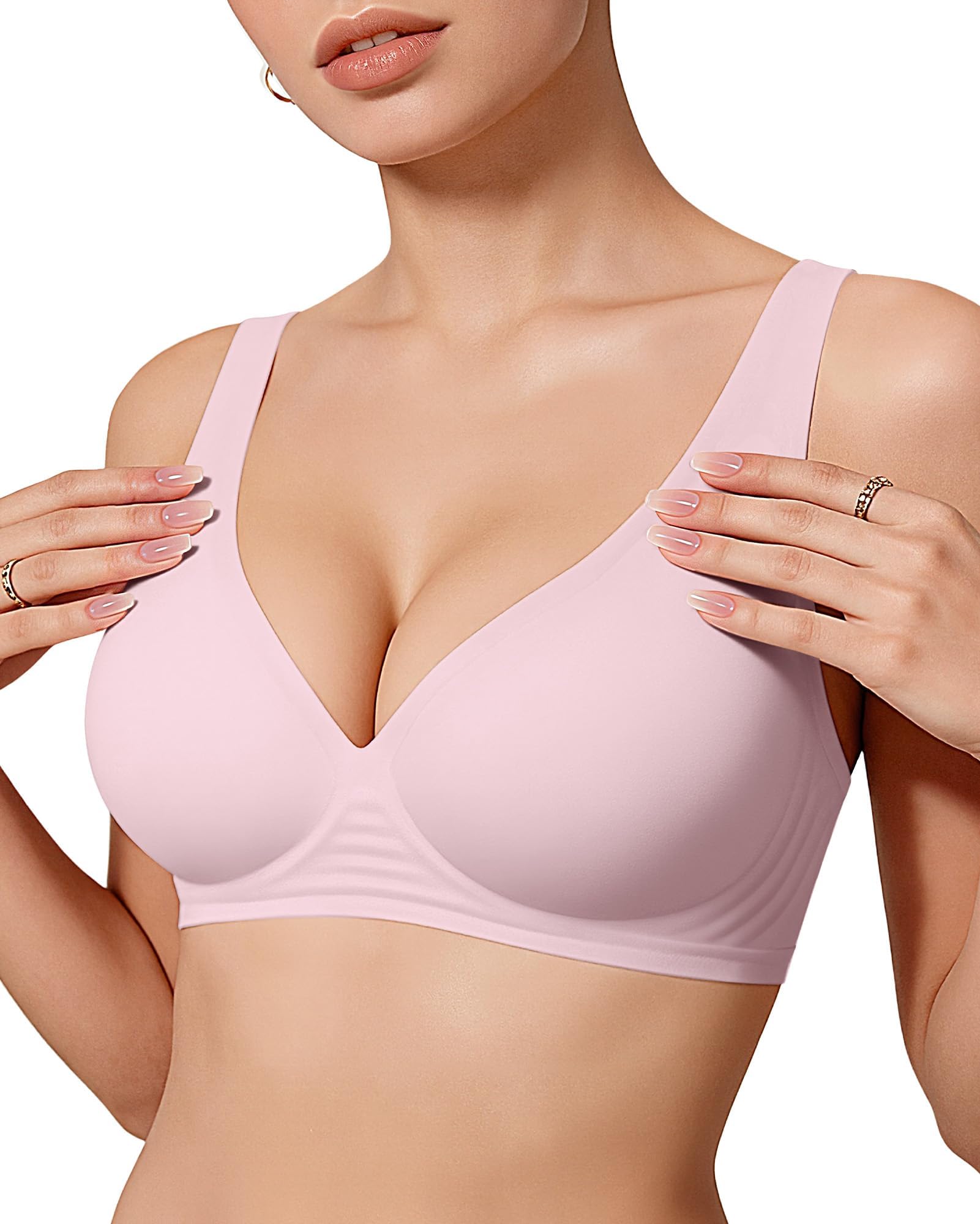 Full Support Bras - These no-wire bras feature a "W-shaped" and innovative 3D supportive technology formed by liquid jelly band, providing full support for your breasts and creating a full, natural-looking chest without the discomfort of a traditional underwire bra. The widened side of the bras with jelly band can effectively conceal excess fat.
