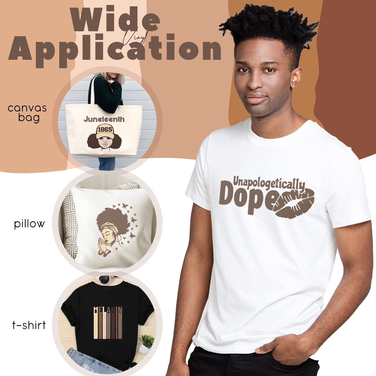 Multiple Color Options - Our htv heat transfer vinyl there are 10 different colors, giving you plenty of options to choose from. The brown melanin adds a unique touch to your personalized designs, making them truly one-of-a-kind.
