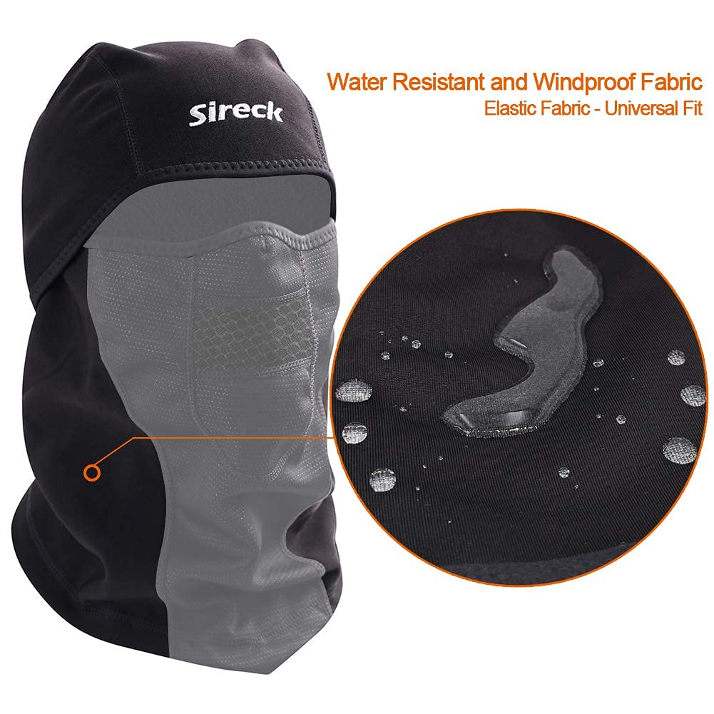 WATER RESISTANT & WINDPROOF FABRIC - This Balaclava hood is made from water resistant and windproof fleece thermal fabric to effectively reduces the cold index. But it is not full waterproof, it is okay in the light rain but not long time.