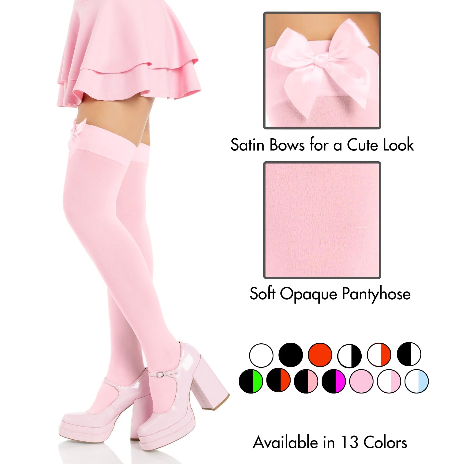 Take basic stockings and add a flirty touch; These opaque thigh highs with satin bow are next level gorgeous.