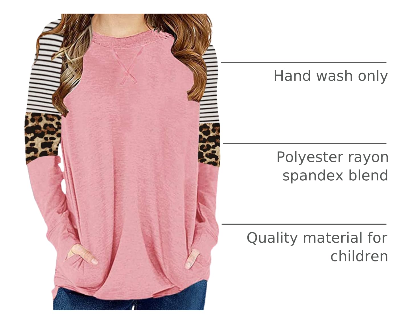 ♥[Features]:The contrast design on the sleeves of girls casual tee is very unique and fashionable.The girl's blouses with different sizes are suitable for girl of age 4 to 13.
