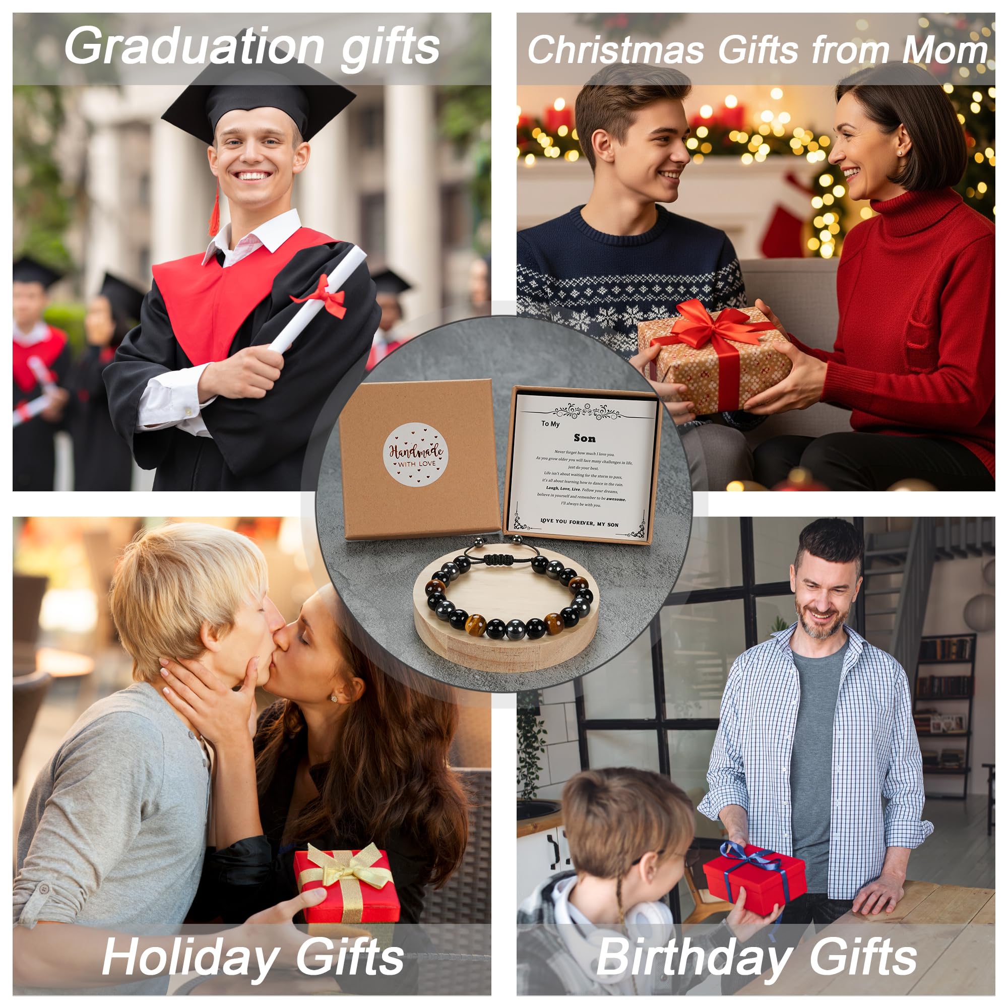 High-Quality Material: Crafted from 10mm natural tiger eye stone, hematite, black obsidian, the To Your Son Bracelet exudes elegance and durability. Our commitment to using nature derived, non nickel, and non lead ensures hypoallergenic, skin friendly beads suitable for daily wear and any occasion.