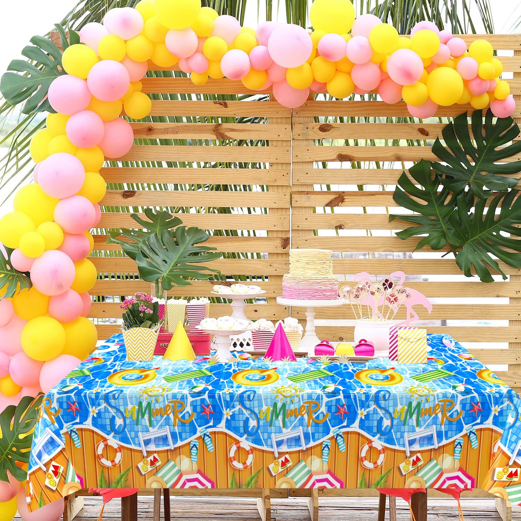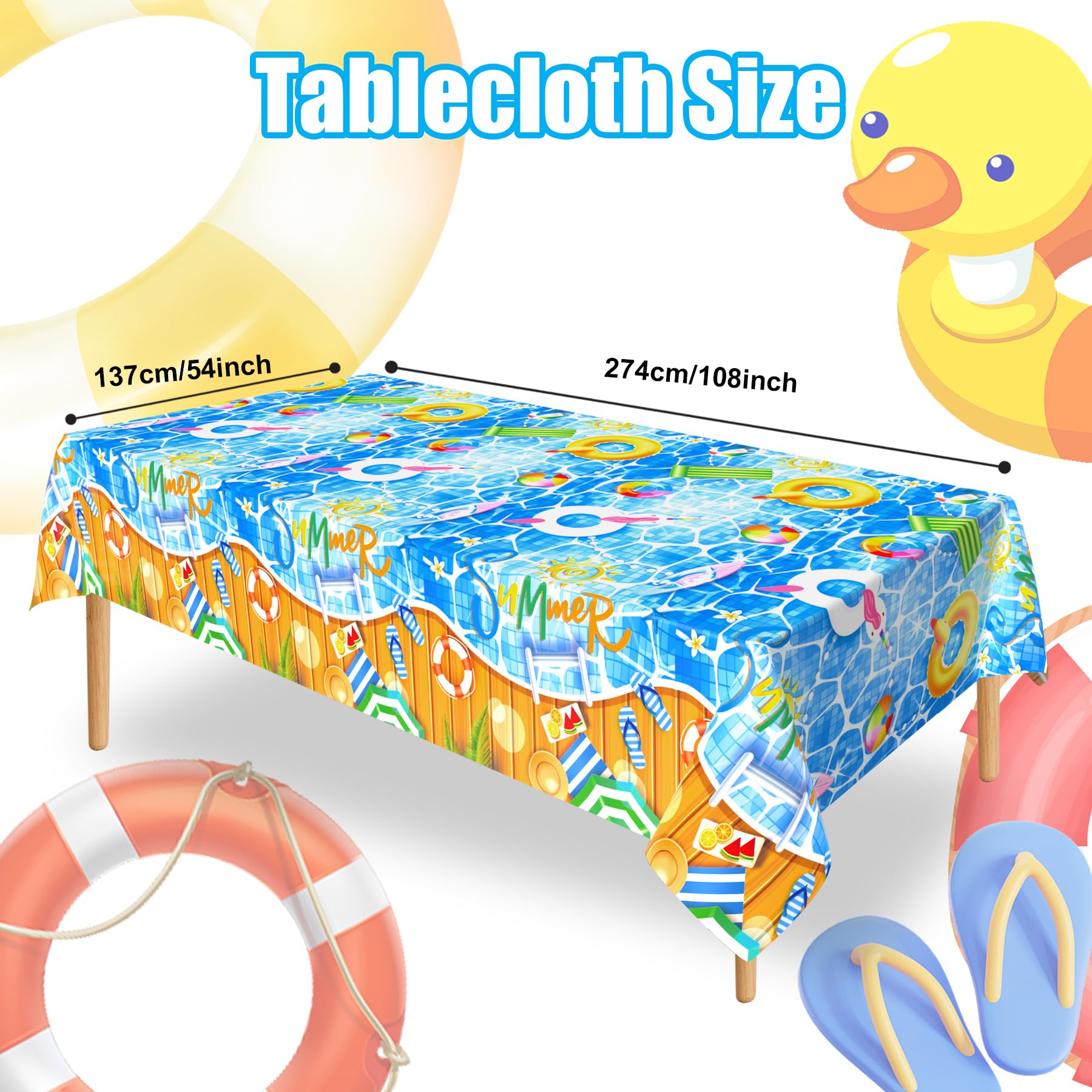 SUITABLE SIZE: The size of the pool party table cover is 54*108 inches/137*274 cm, which is suitable for most rectangular tables. You can also use two or more tablecloths to combine them together, or cut them into the shape you want, so that more friends can come to your party and enjoy the happy time at the summer pool beach.