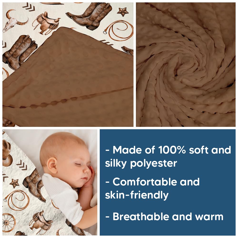DURABLE & LONG-LASTING: our cowboy baby blankets are designed to withstand countless washes and everyday use, our western baby blanket retains its softness and vibrant colors over time. This durability ensures that it remains a beloved keepsake throughout your child’s early years.
