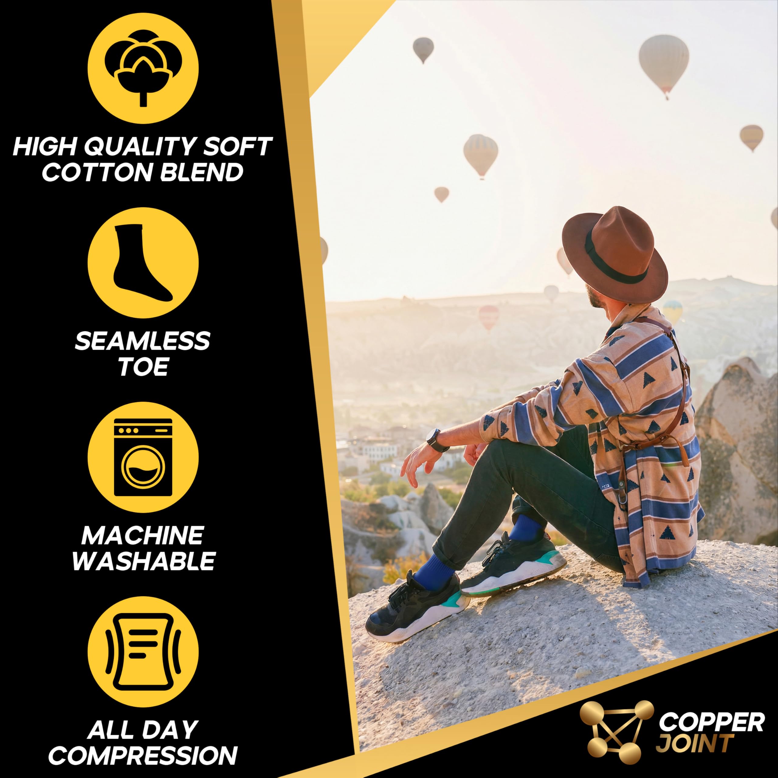 Copper Compression with Breathable Comfort: Copper-infused fibers help control odor and keep legs feeling fresh. Soft, moisture-wicking fabric delivers breathable support for flights, long shifts, workouts, or daily wear.