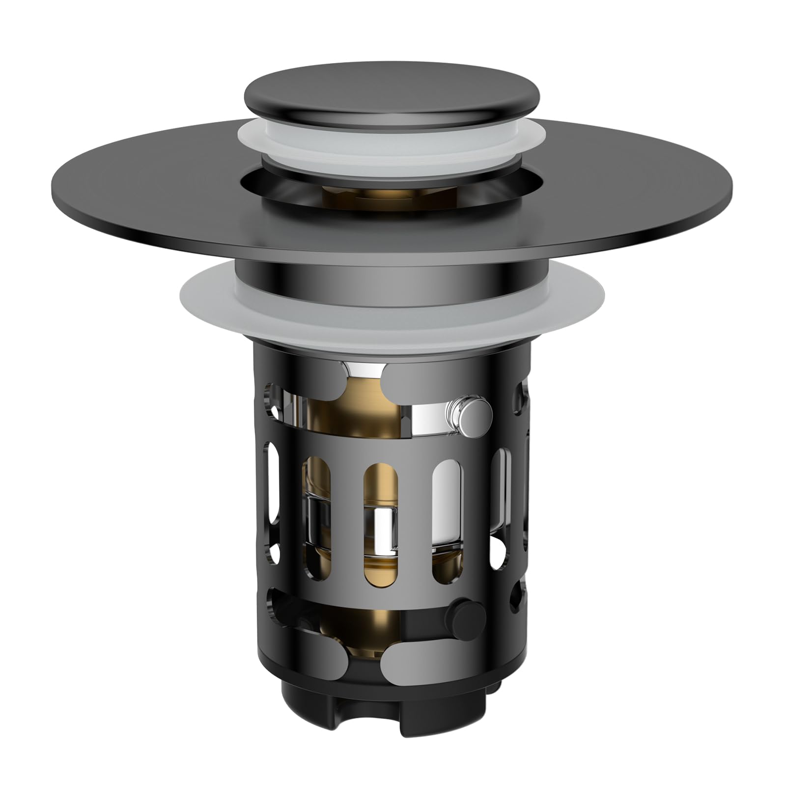 [Easy to Clean] Cleaning is just as easy. The dual-layer removable basket can be easily removed by simply twisting, allowing you to thoroughly clean all components of the drain stopper. Additionally, the basket's detachable bottom design surpasses similar non-removable options, making cleaning more comprehensive and preventing the awkwardness and inconvenience of digging out items by hand