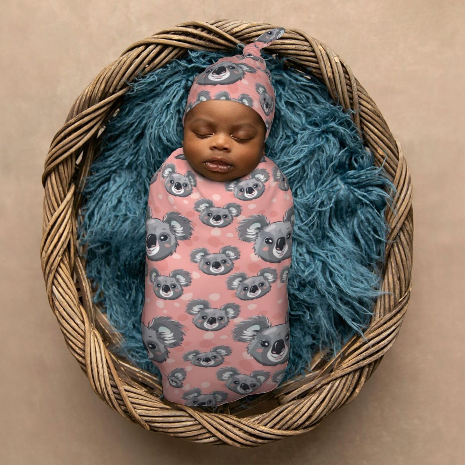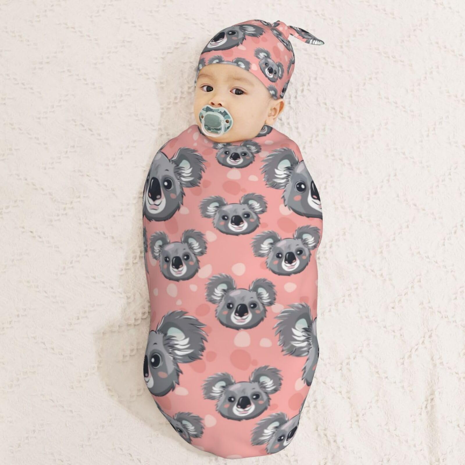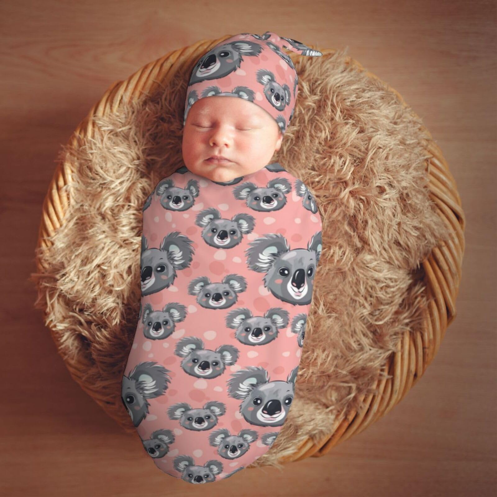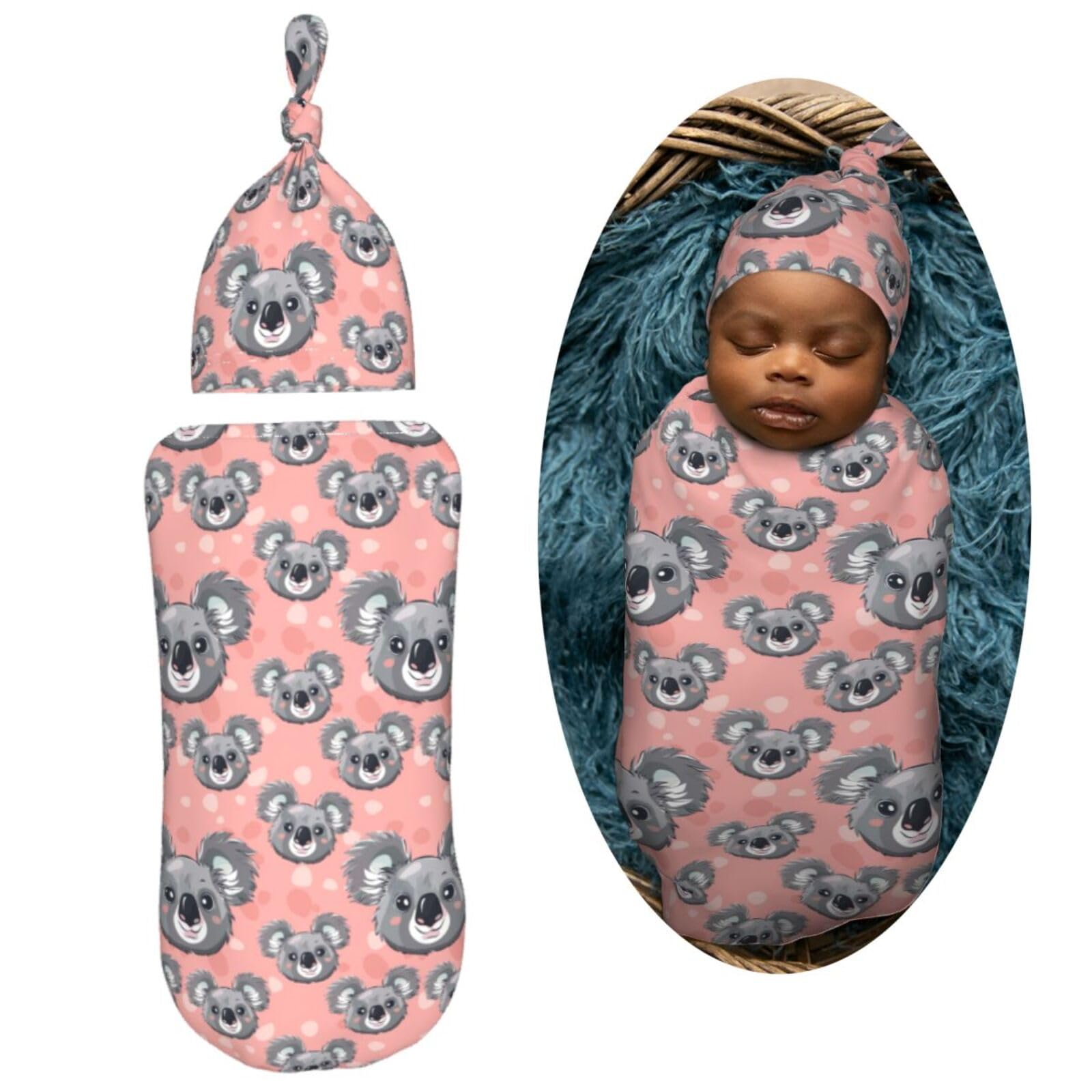 Size: Swaddle Blankets For Baby Boy/Girl Size: 20.8" X 11.4" ; And The Beanie Hat Size: 13"X6.5" . Funny Cute Koalas Swaddle Blankets Is For 0-6 Month Babies.