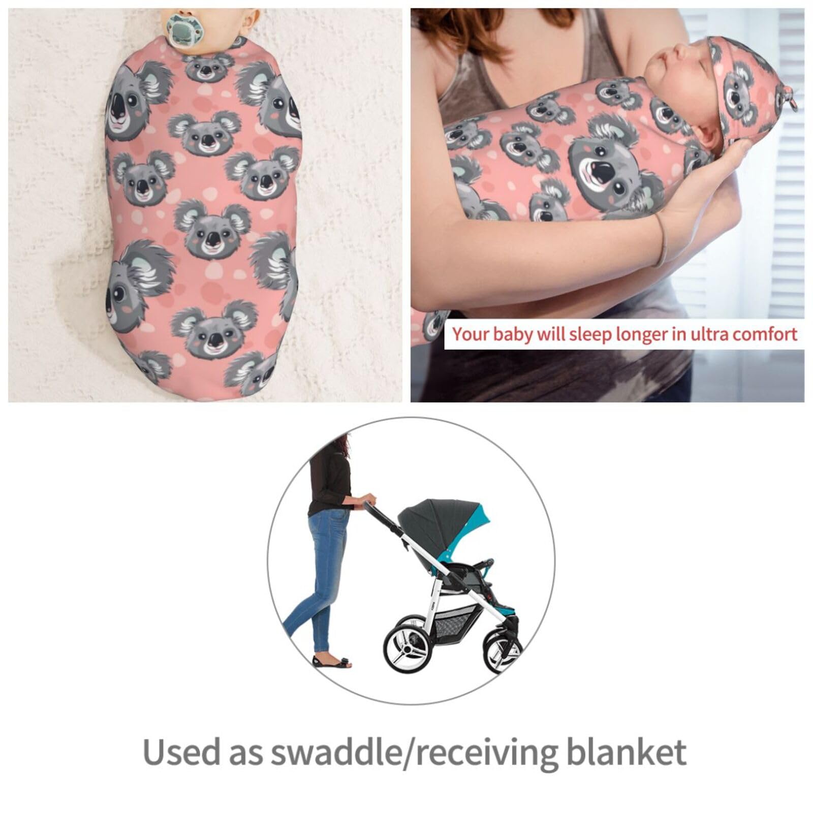 Material: This Who Love Funny Cute Koalas Newborn Baby Swaddle Blanket And Baby Hat Set Is Made Of High-Quality Polyester, Which Is Very Soft And Skin-Friendly, Swaddle Bags Blanket Has Good Warmth And Elasticity, Keeps Your Baby Perfectly Wrapped, Cozy, And Sleeping Peacefully.