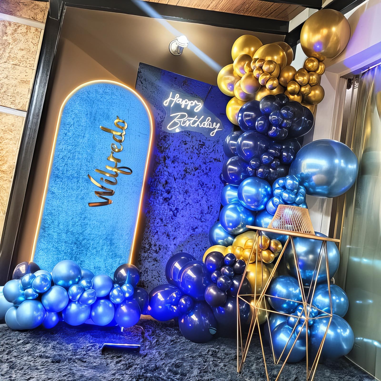 Multi Occasion: These blue gold chrome latex balloons 12 inch are for graduation party decorations, royal blue birthday decorations, retirement, baby shower, wedding, anniversary celebration, gender reveal, engagement kids, boys, men etc