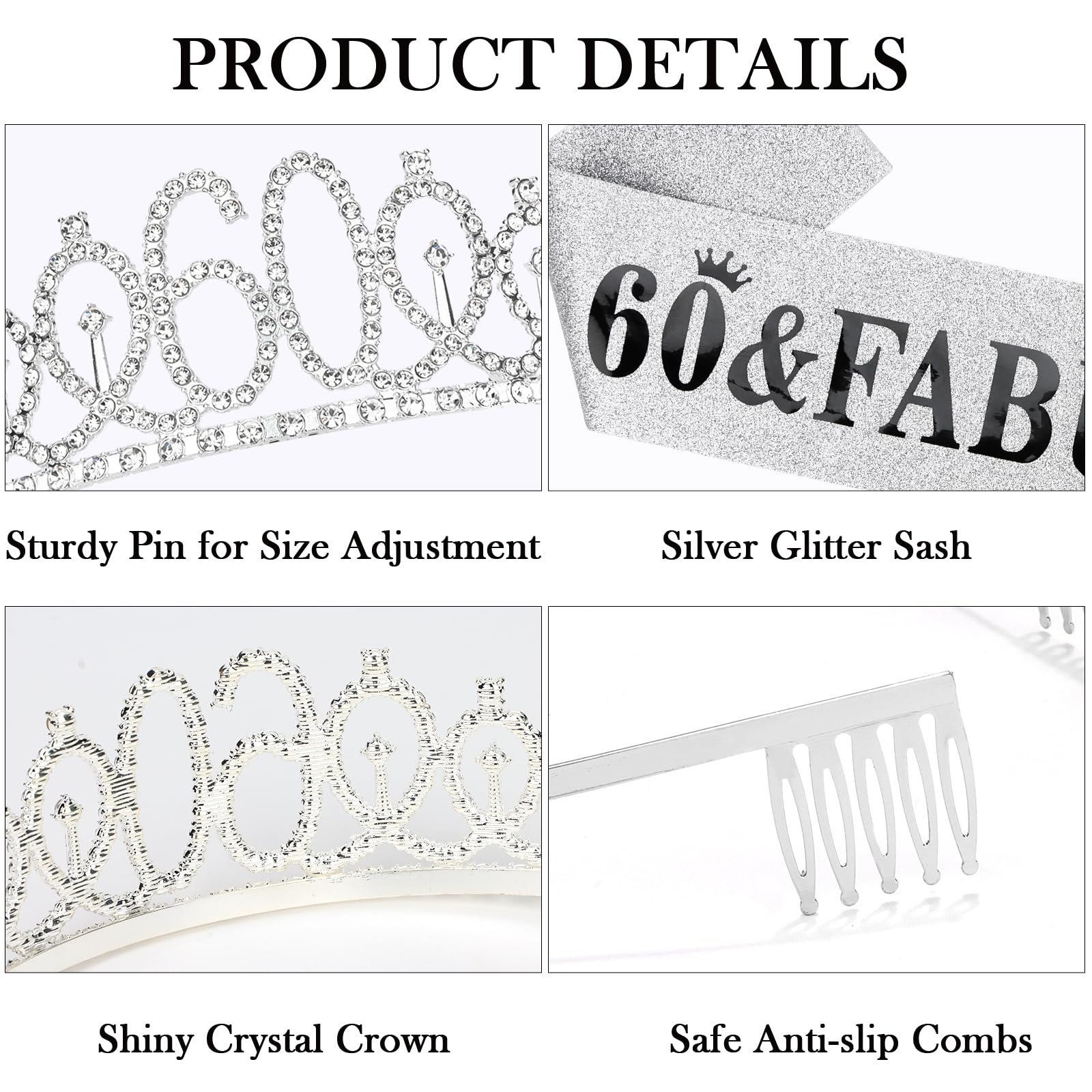 Package Included: The package contains "60 & Fabulous" birthday sash and 60th crown and a pearl pin. You will be like a queen in your birthday celebration