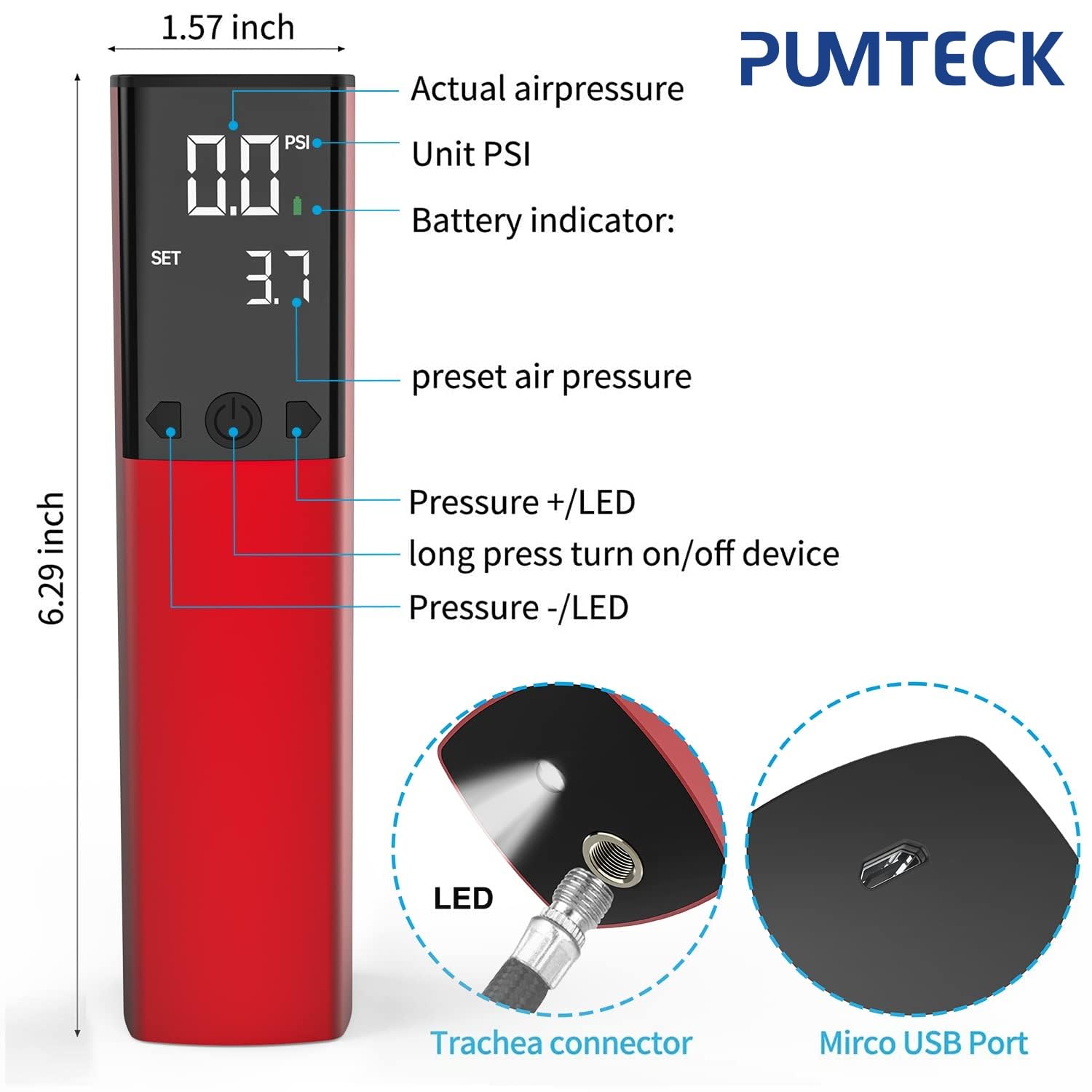 Portable Compact Design:Size: 6.29*1.57*1.57inch, Weight: 0.55LB, fit to in your bag, your boot or even your pocket. Allows you to take this mini pump to wherever you might need it to keep your balls inflated.With bright LED lights and backlight LCD display make it convenient to use the ball pump at night or in dark places