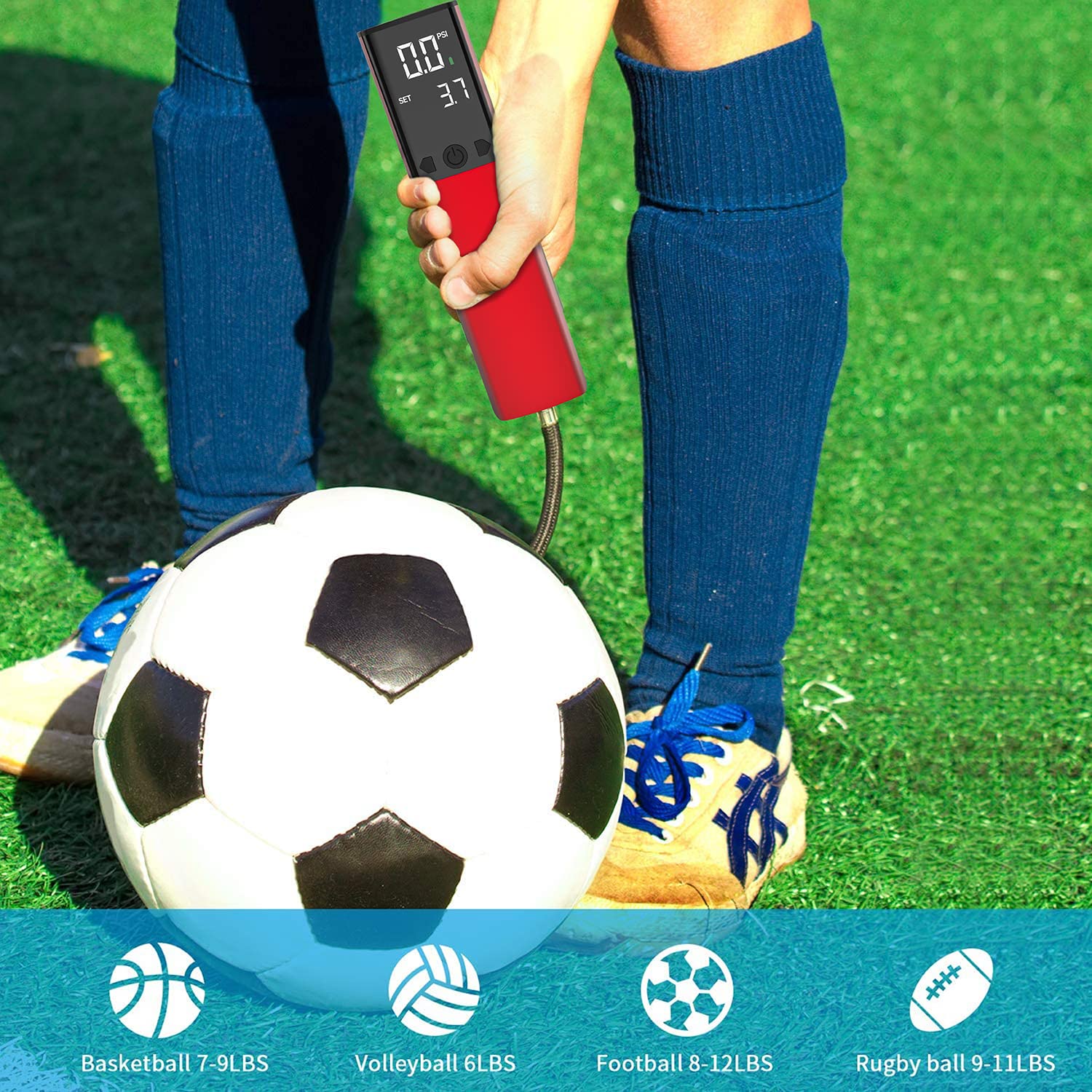 Accurate Pressure Alignment: built-in Digital Pressure Gauge and LCD Display, you can preset a very accurate PSI to inflate your ball ,and then you could get an accurate level of pressure (PSI) in balls. Makes inflating balls much easier without wasting time, you can focus, not on the ball but, on the game
