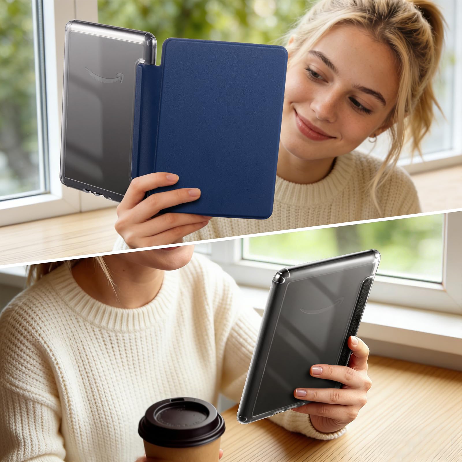 Comprehensive Protection for Screen & Device — The premium waterproof PU leather front cover combined with a soft microfiber lining prevents scratches and smudges, while the flexible clear TPU back case absorbs shocks and drops—providing full 360° protection for your Kindle.
