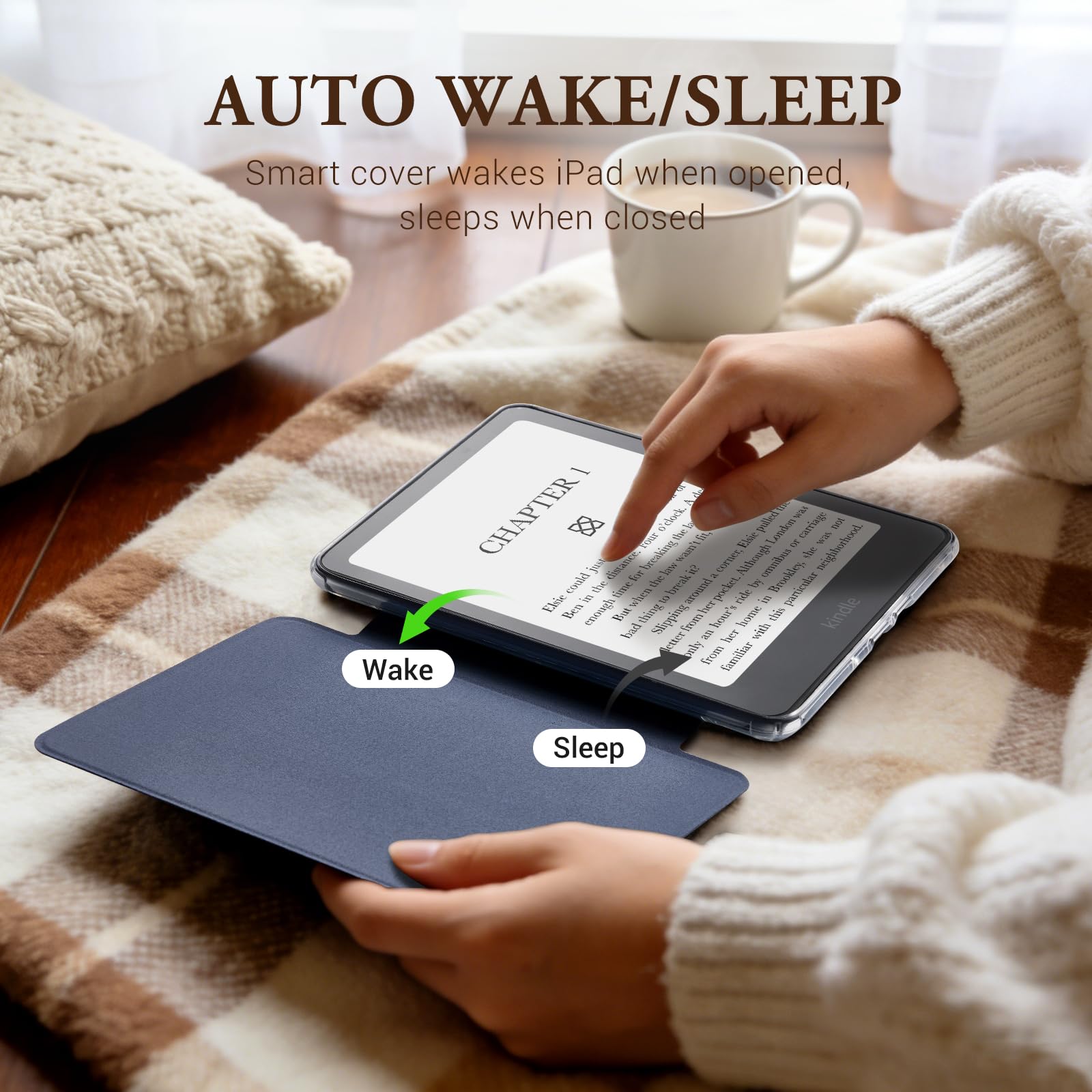 Smart Auto Wake/Sleep Function — The magnetic closure automatically wakes your device when opened and puts it to sleep when closed. This feature extends battery life and ensures your Kindle is always ready for your next reading session.