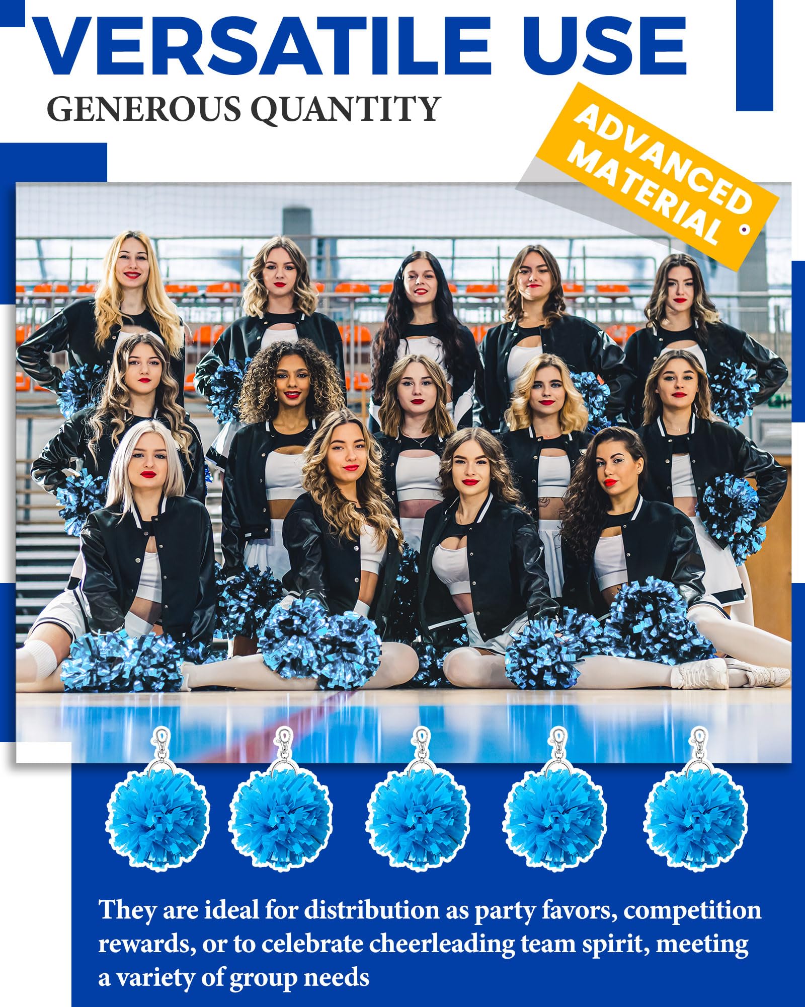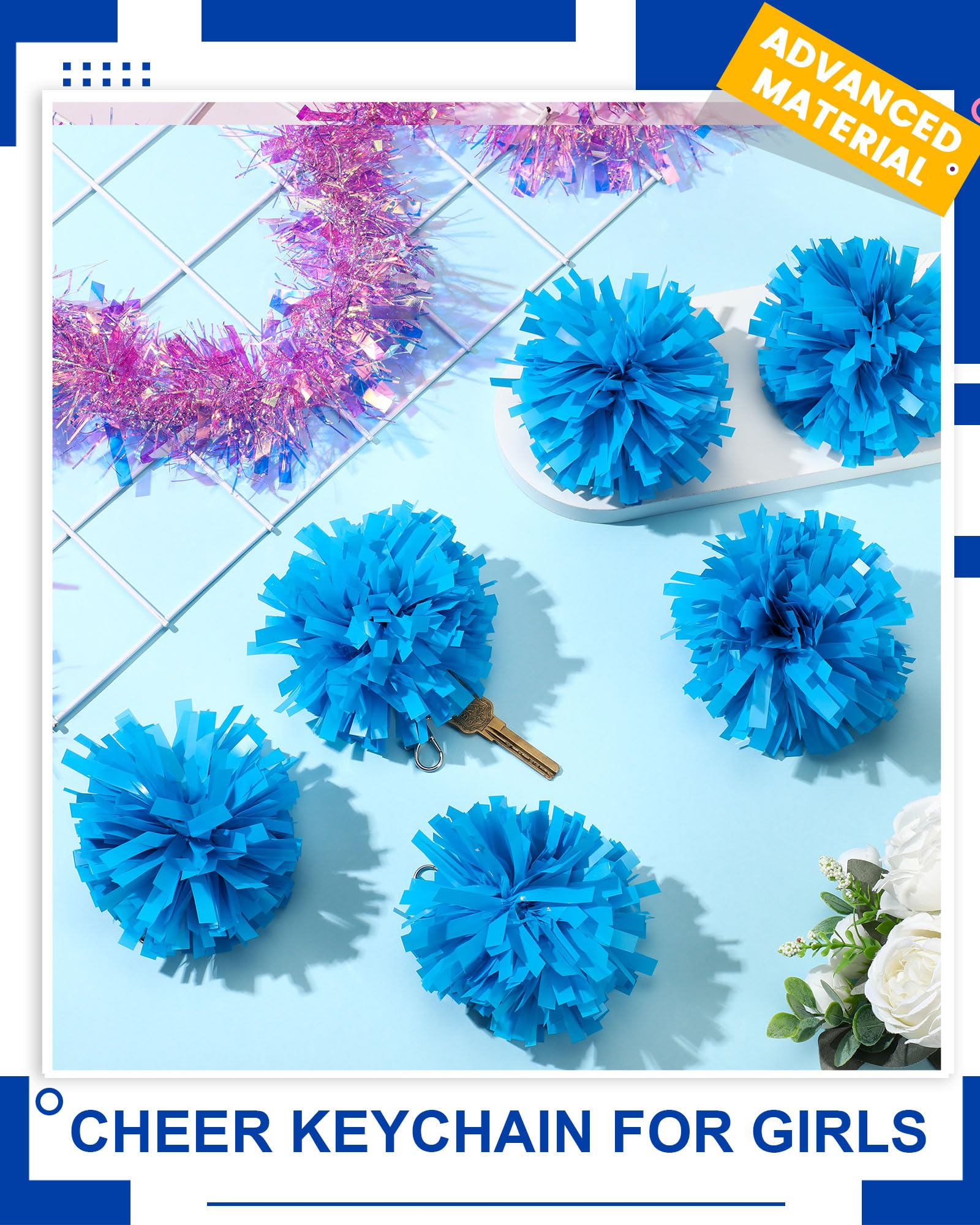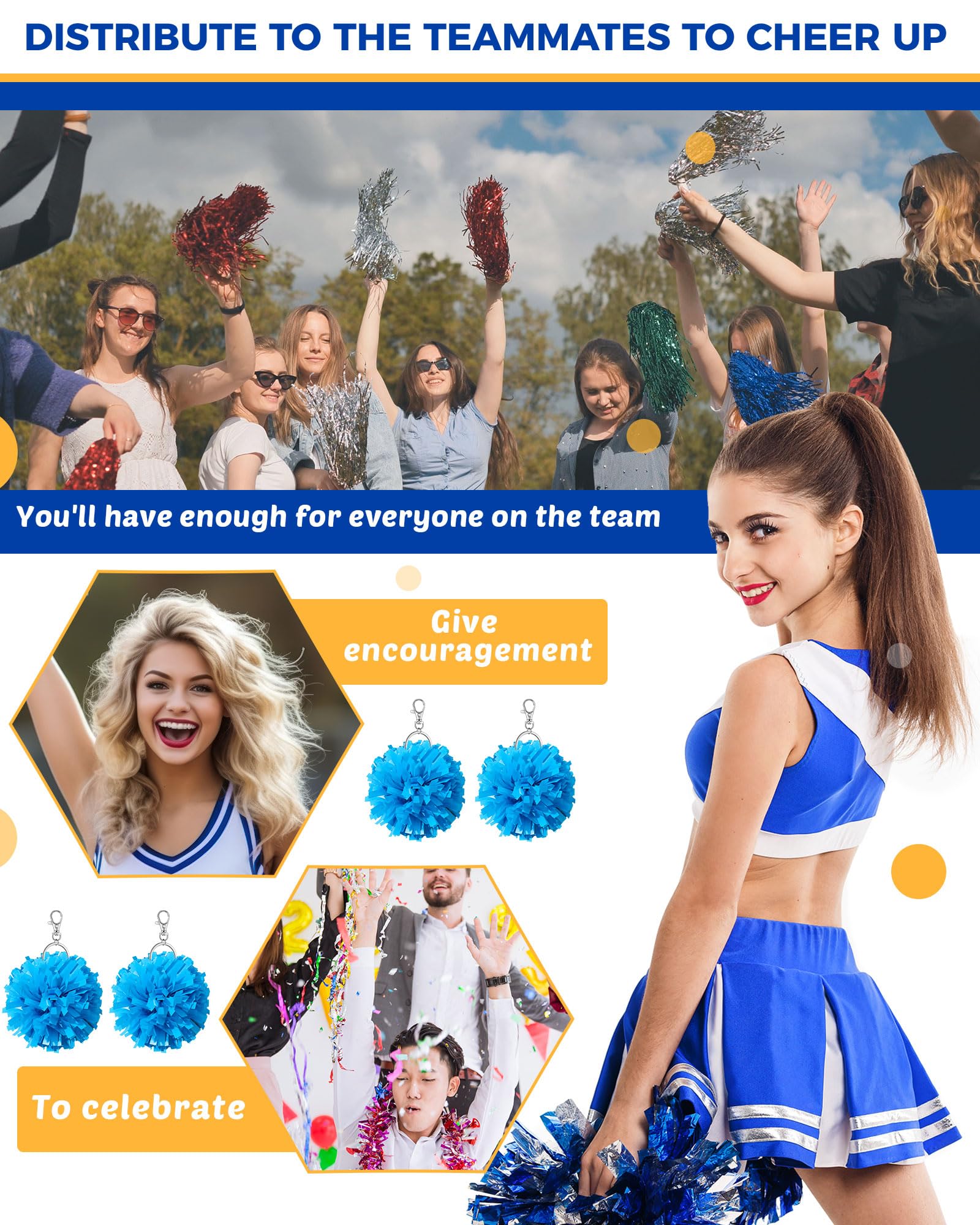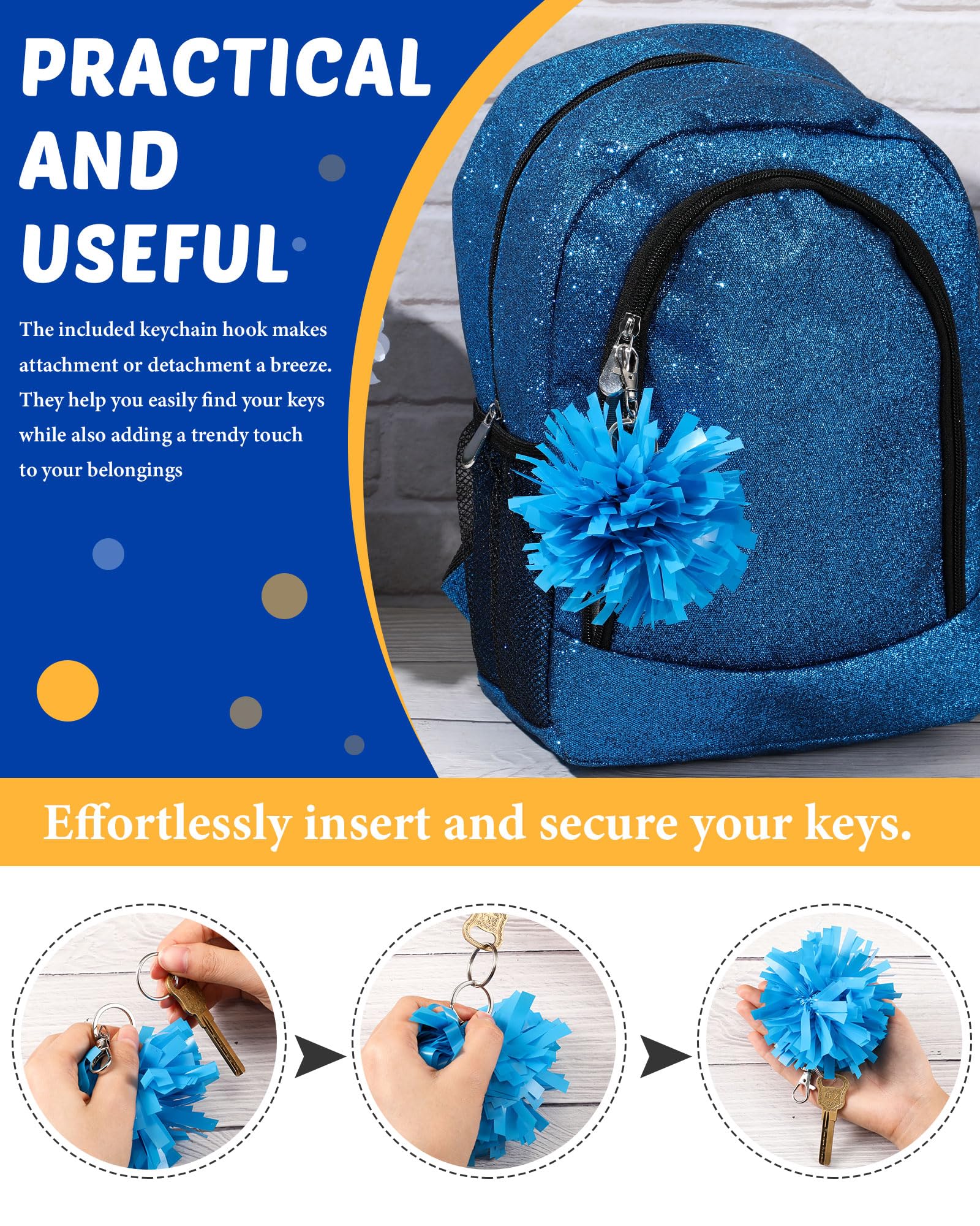 Sturdy Material and Vibrant Colors: these pom pom keychains are made of quality plastic and metal for durability, and feature nonfading, shimmering sky blue foil; They catch the eye, boost cheerleading spirit, and show your strong support for the team