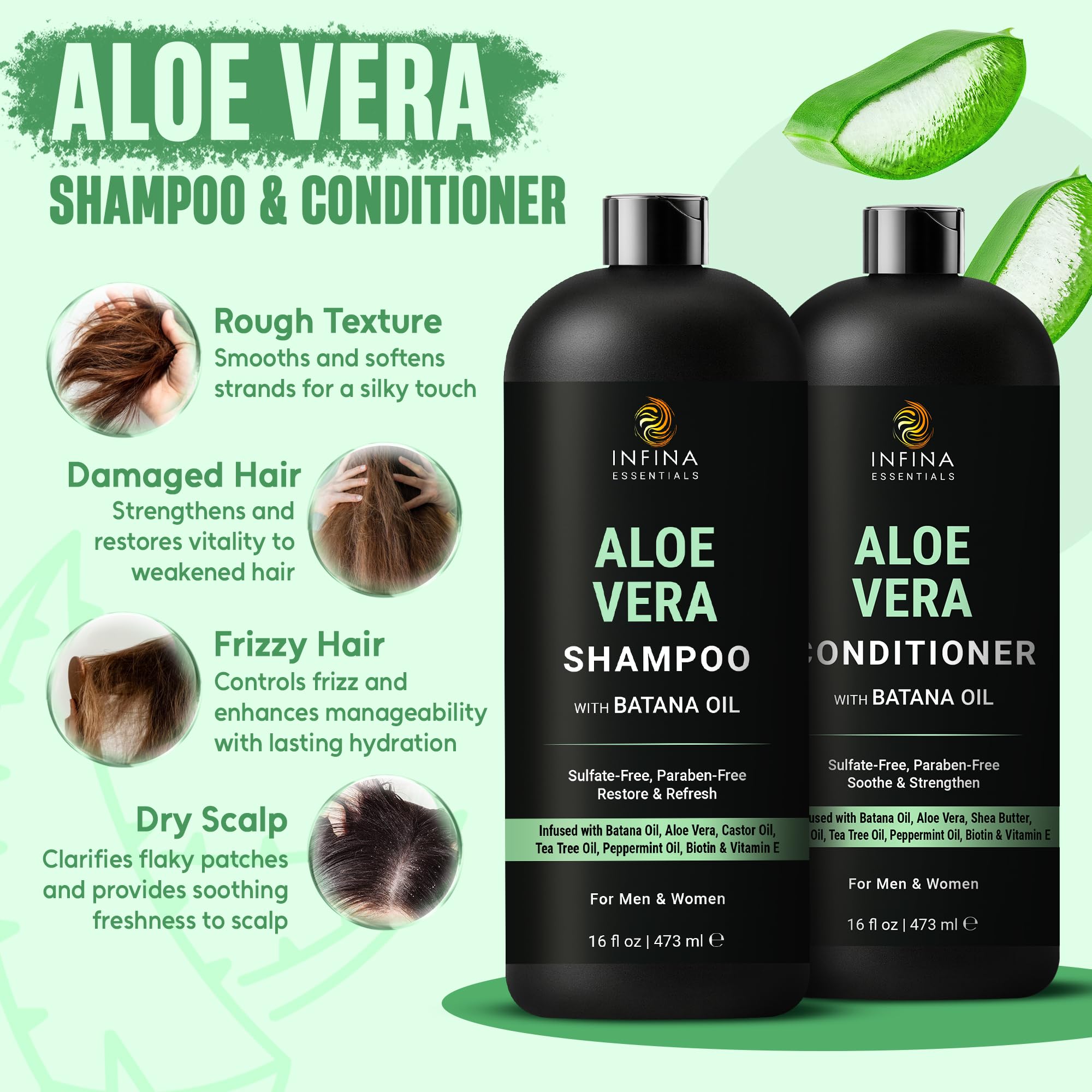 HYDRATING ALOE VERA SHAMPOO: Aloe Vera and Batana Oil deliver lightweight hydration while gently cleansing | Helps reduce scalp dryness and flakiness for smooth, refreshed, healthy-looking hair