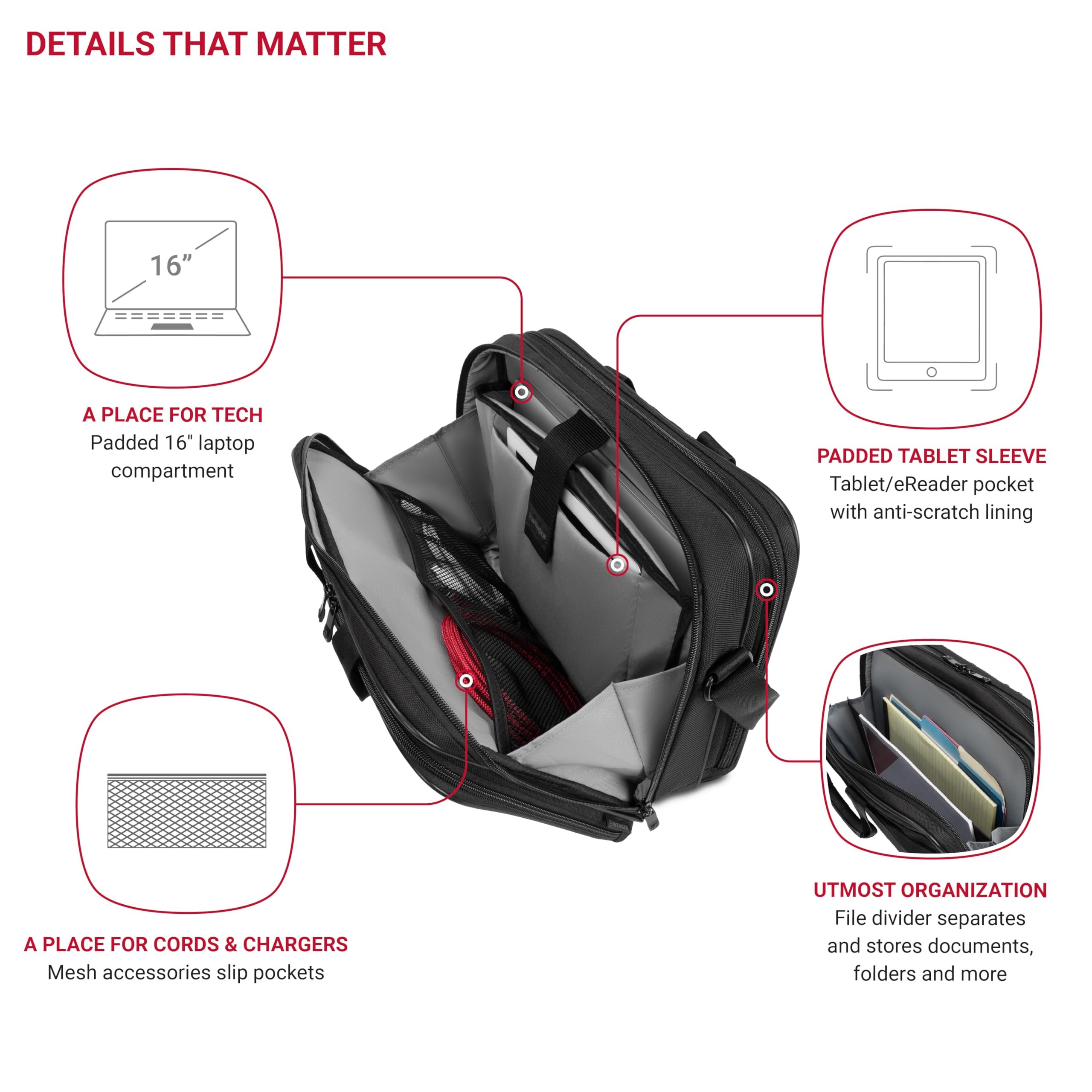 Padded 16" laptop compartment and dedicated 10" tablet pocket with anti-scratch lining