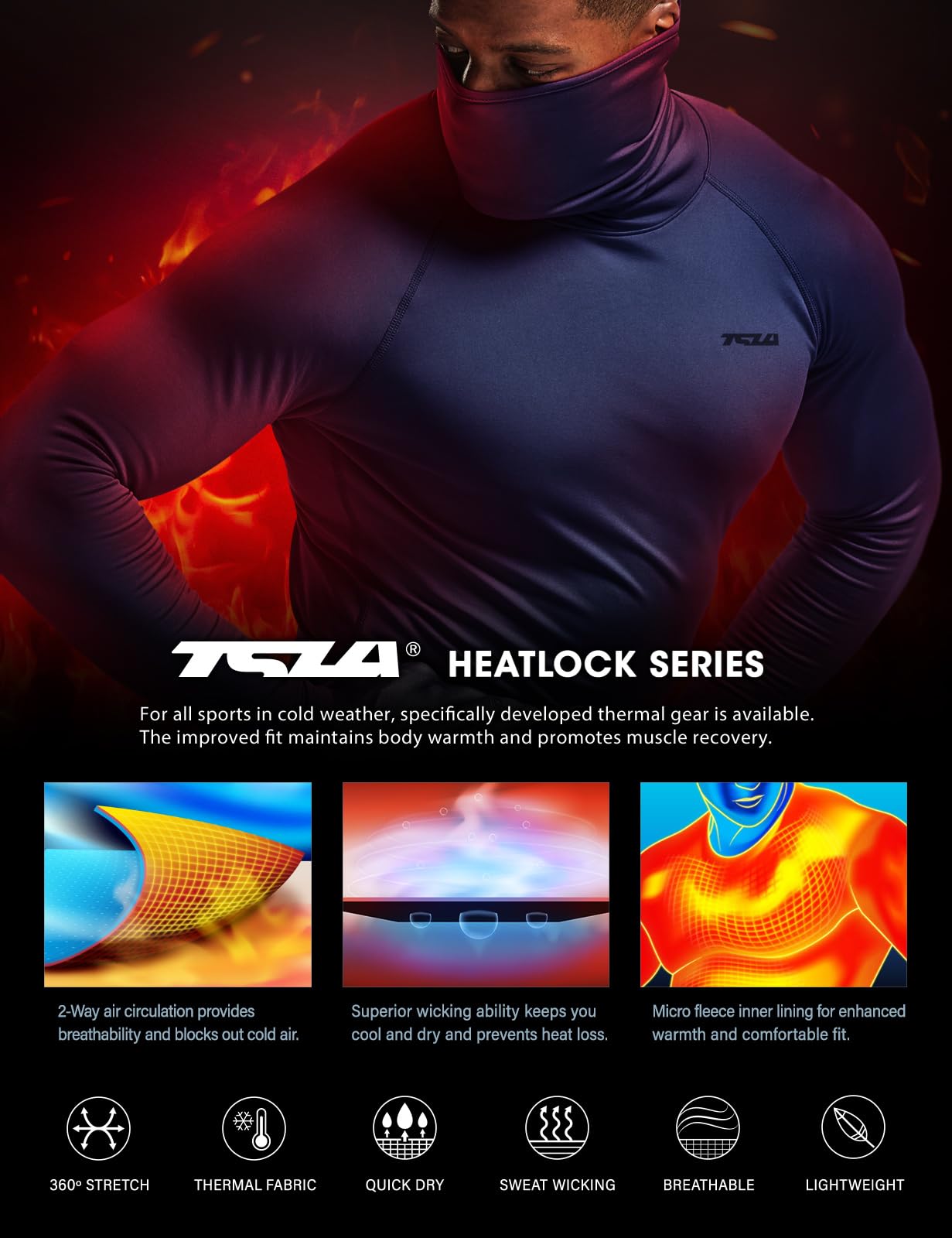 TSLA Thermal Baselayer Series is designed with the best heat insulation and thermal materials for all sports and cold-weather activities.