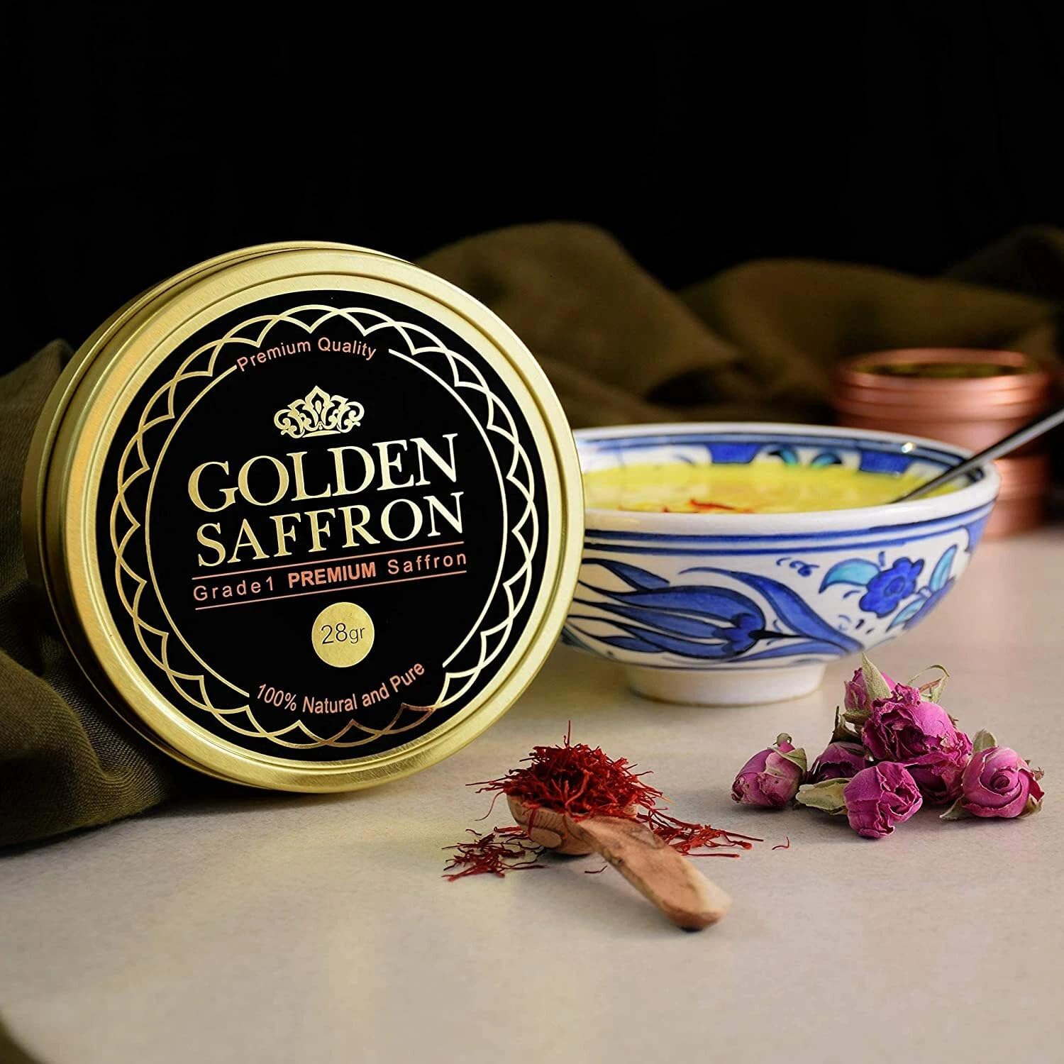 GOLDEN SAFFRON IS PERFECT ADDITION TO ENHANCE ANY RECIPES - Golden Saffron can be used to add amazing taste, color, and flavor to any dish. Our saffron is perfect for Tea, Paella, Pasta, Lamb or Chicken Tagine, Biryanis, cakes, Moussaka, Saffron Aioli, Puddings, Rice, Curries, Stews, Casseroles, Risottos, Chicken kebab, Golden Milk and any other recipes