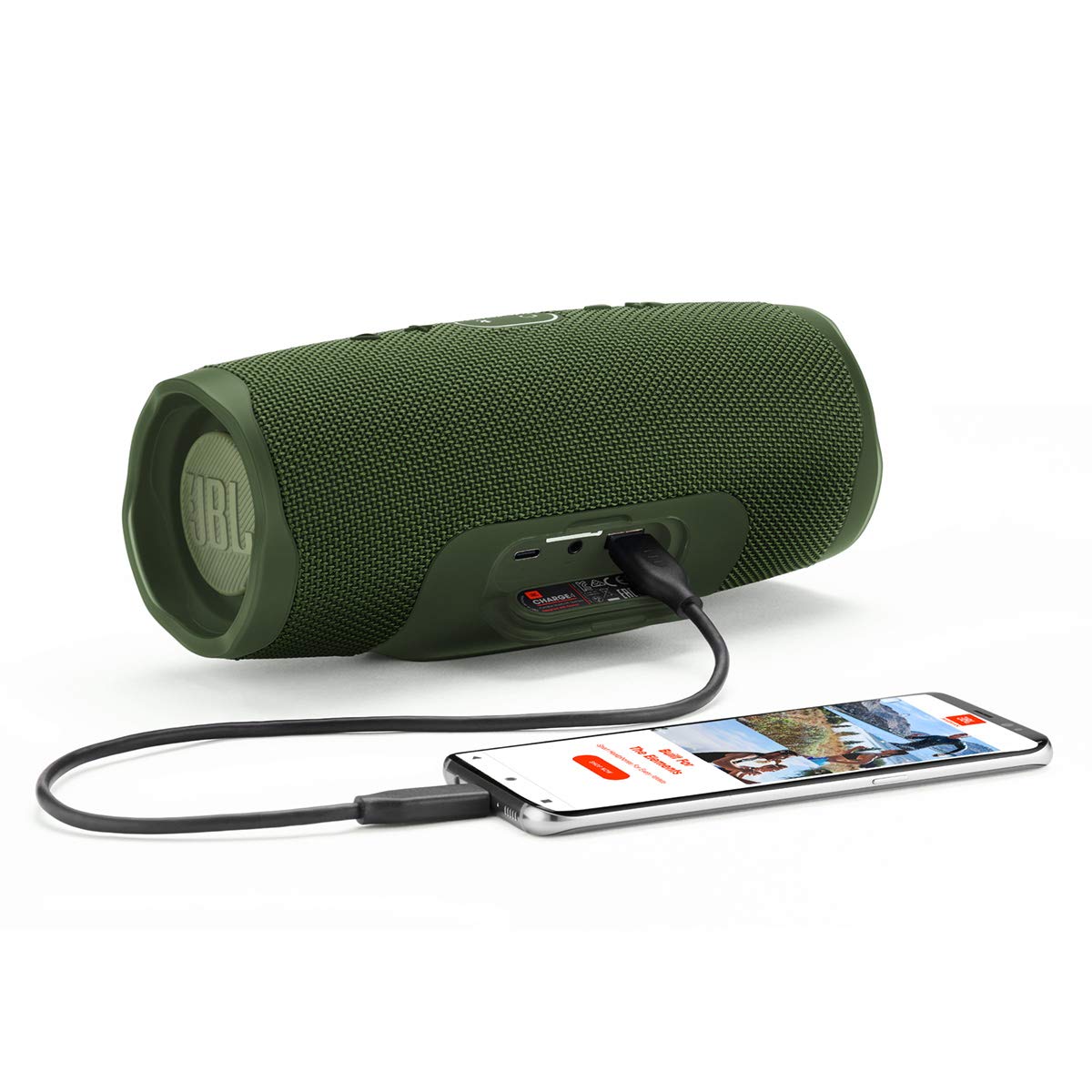 Introducing the JBL charge 4 portable Bluetooth speaker with full-spectrum, powerful sound and a built-in power bank to charge your devices. It Features a proprietary developed driver and two JBL bass radiators that intensify sound with strong deep bass. Its high-capacity 7500mAh rechargeable li-ion battery provides up to 20 hours of playtime. The speaker carries a convenient USB charge out to quickly charge your devices, such as your smartphone, so you will never run out of power again. The charge 4 features a rugged design, IPX7 waterproof rated exterior and comes in a suite of cool colors. Together with JBL connect+ it can wirelessly link more than 100 JBL connect+ enabled speakers to elevate your listening experience