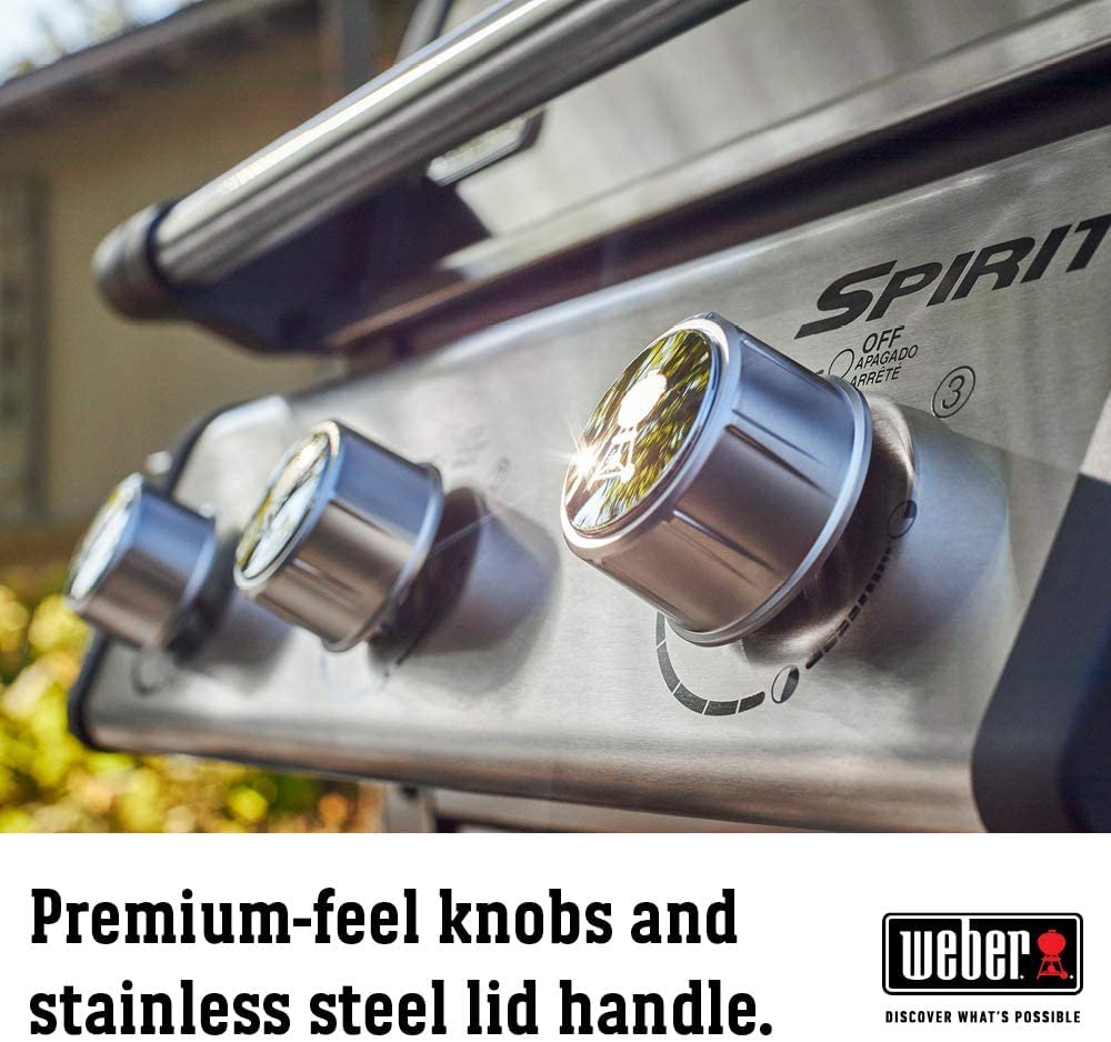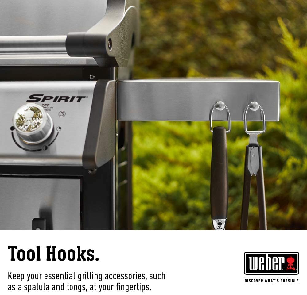 The three-burner Spirit S-315 gas grill is ideal for entertaining a crowd. Use the convenient side tables for placing serving trays, while grilling tools hang from the tool hooks. Designed with a sleek stainless steel finish and ample cooking area. The porcelain-enamel cast-iron cooking grates are durable, easy to clean, and retain heat for the perfect sear. It’s the perfect answer to any meal.