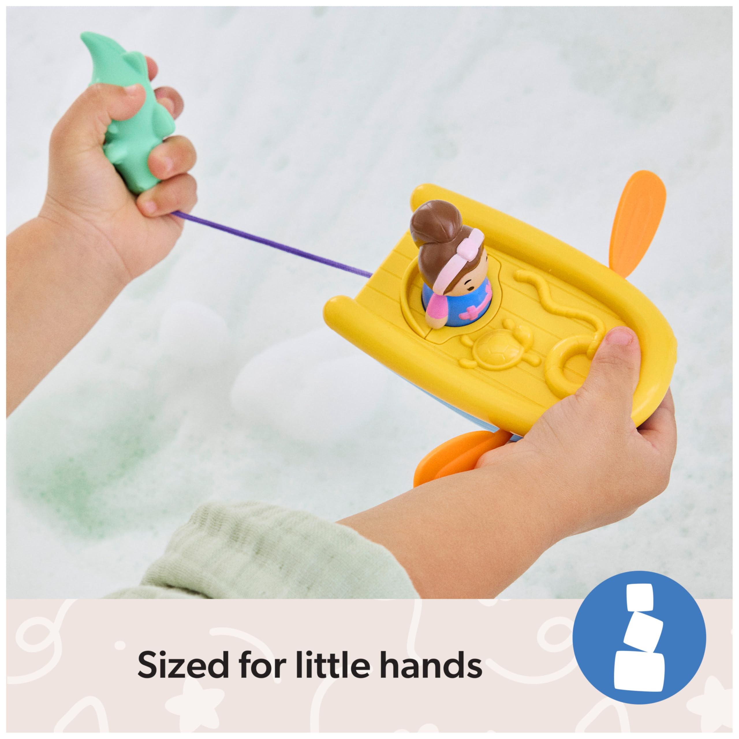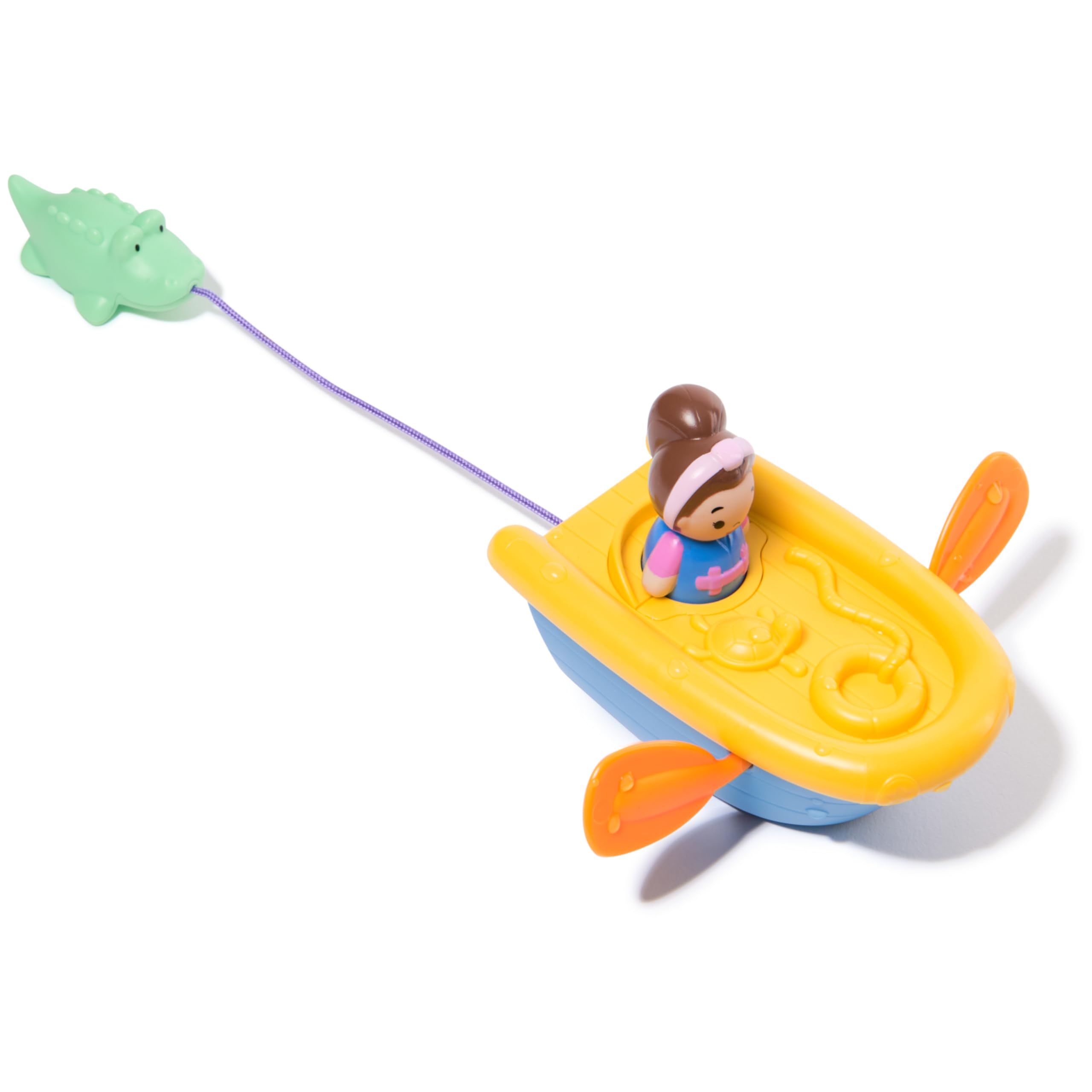 Official Ms. Rachel Toys: Encourage littles to watch and sing while Ms. Rachel rows in the water with the Row Your Boat Water Toy featuring a green crocodile behind her