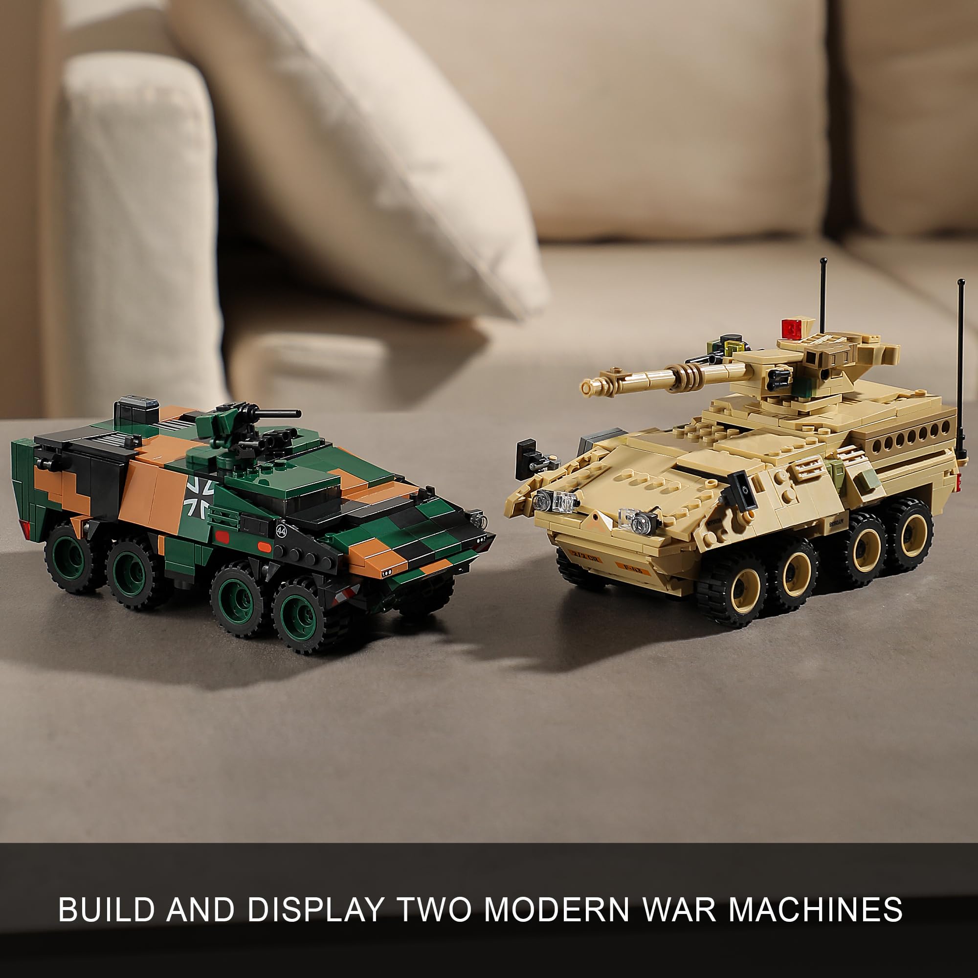 legendary Military Builds: Build the Iconic German Boxer IFV and US Stryker MGS with 896 pieces. This building set packs rotating turrets, heavy-duty tires, and more—ready for thrilling battlefield missions right in your living room