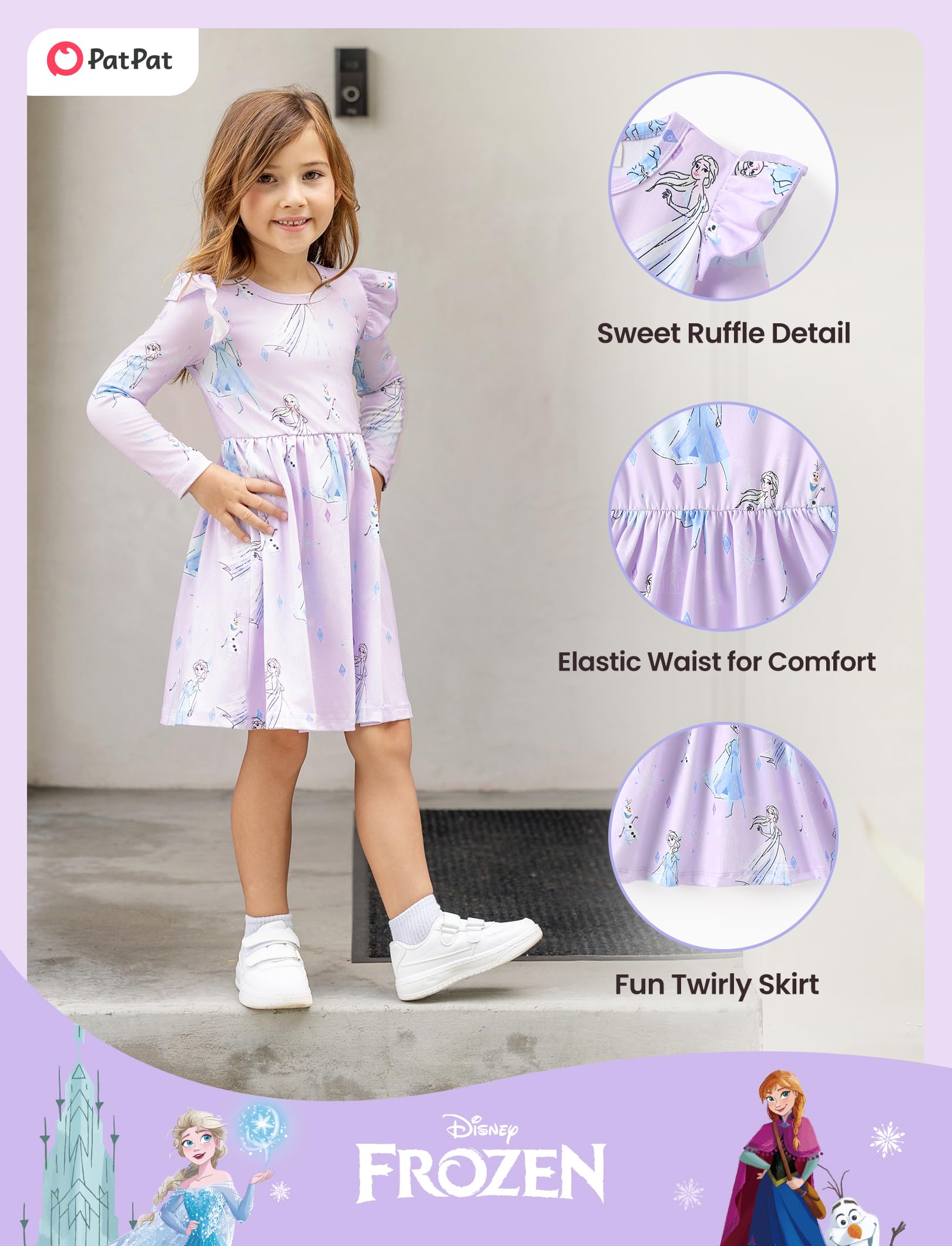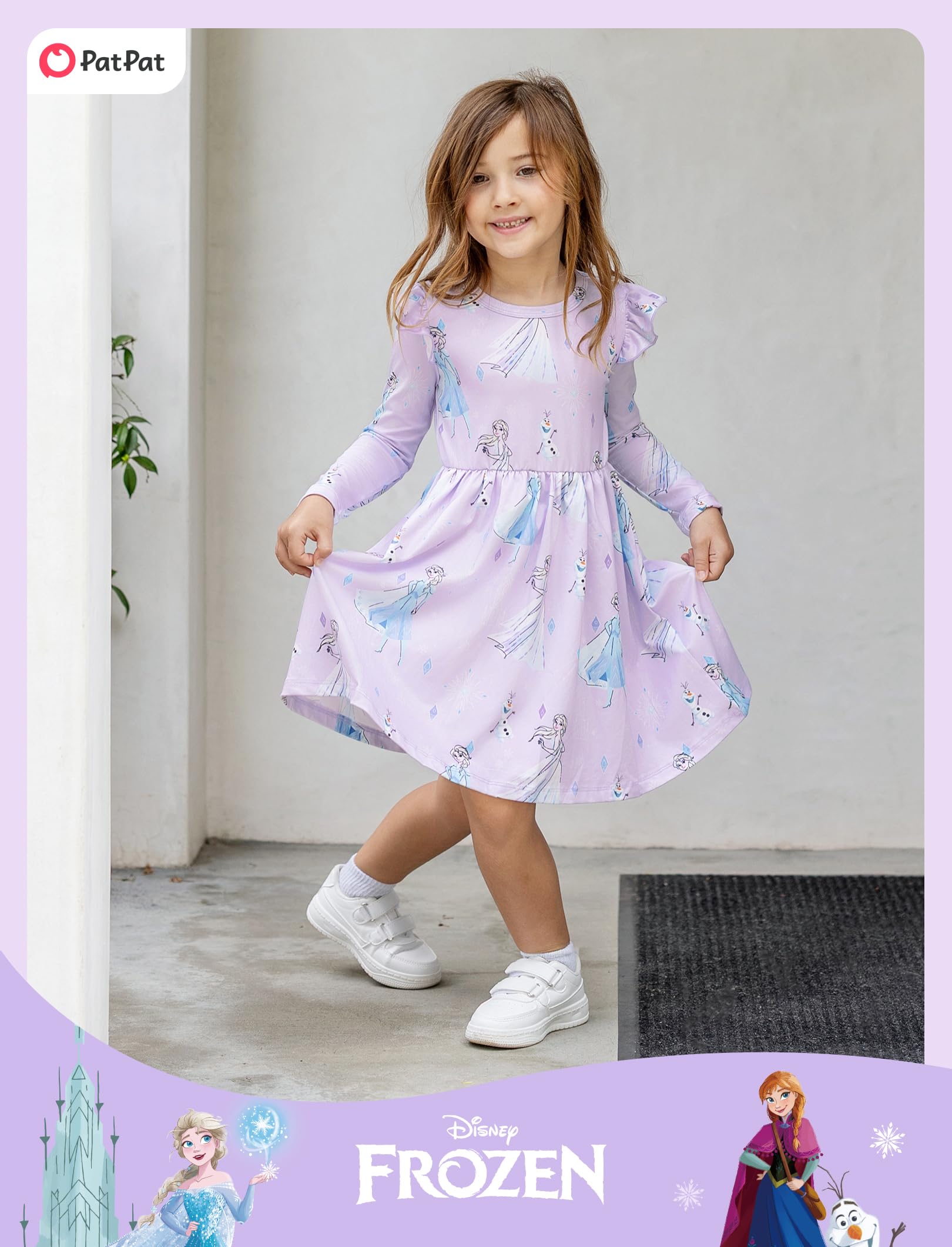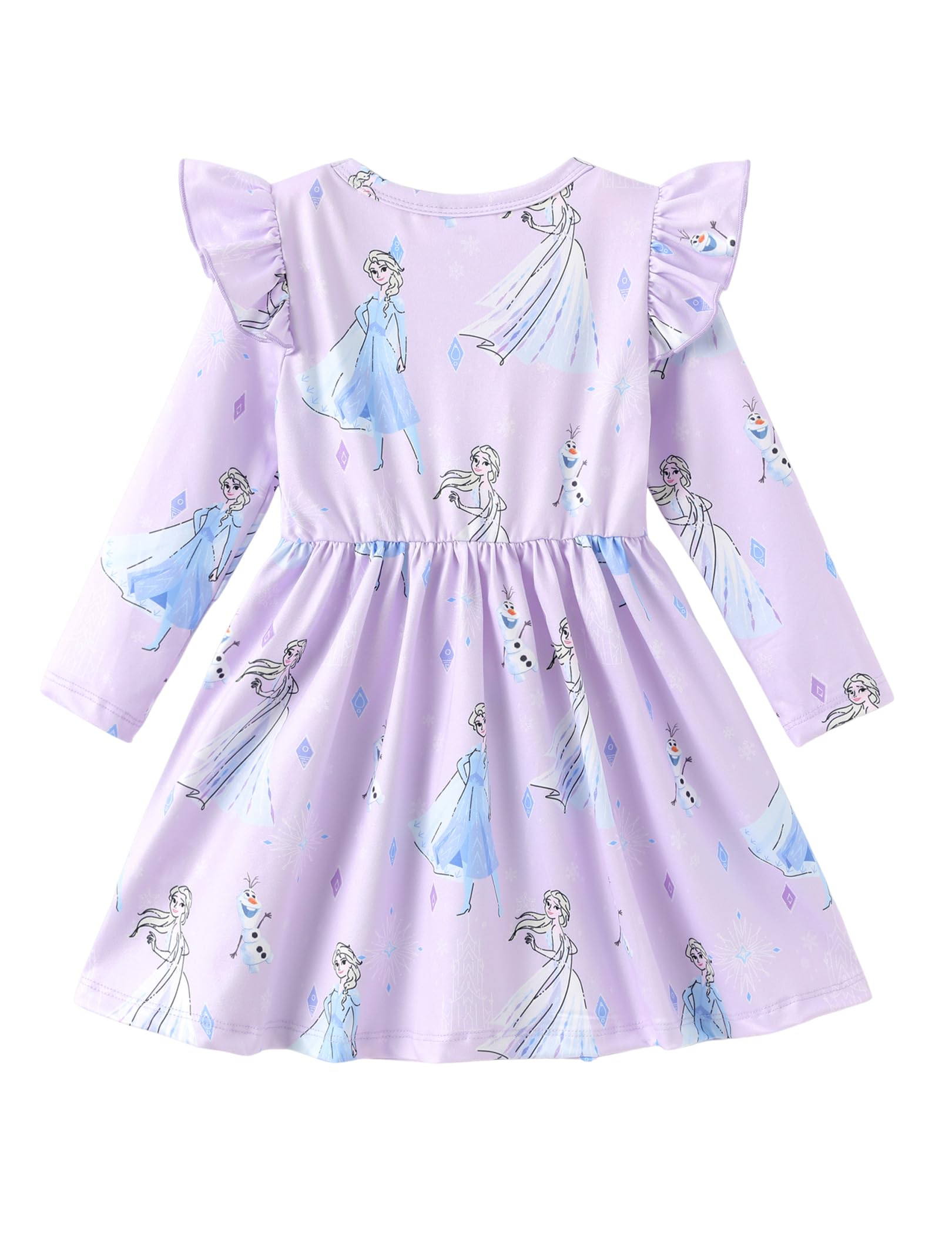 Frozen Elsa Dress for Girls: This adorable lavender dress features flutter sleeves, a classic crew neckline, and a playful allover print of Elsa in both her Frozen and Frozen 2 looksβplus everyone's favorite snowman, Olaf! With its stretchy waist and twirl-friendly skirt, itβs perfect for little fans who want to play, pretend, and celebrate their favorite Frozen moments. Great for birthdays, dress-up days, or everyday Disney fun