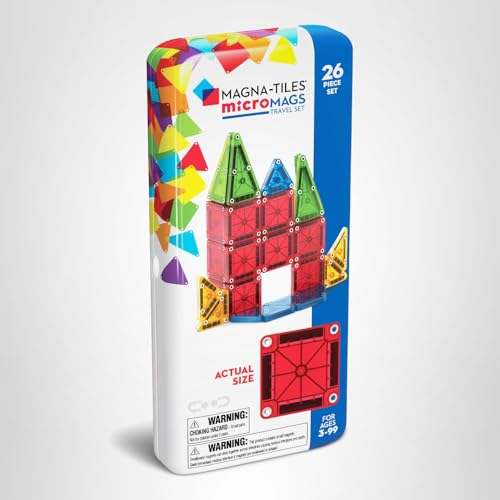 What’s Included: 26 microMAGS magnetic tiles, including: 4 Right Triangles, 4 Isosceles Triangles, 6 Equilateral Triangles, 12 Squares. The metal tin packaging provides both convenient storage and baseplate for builds on the go.