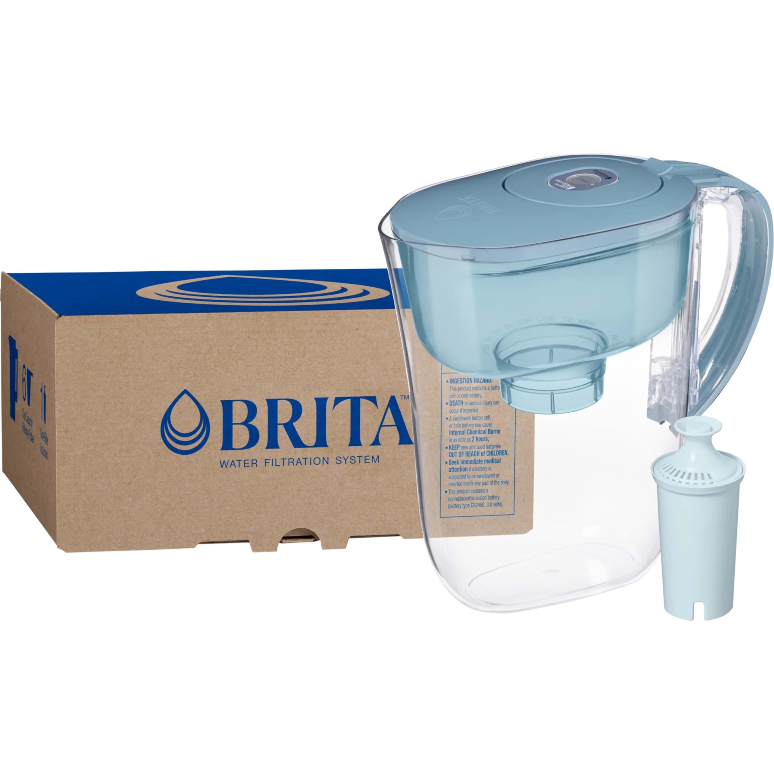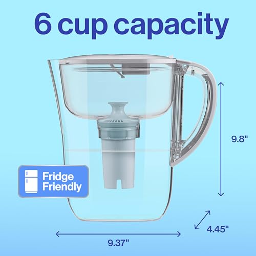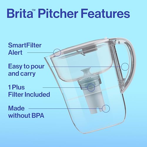 Drink great tasting tap water with this Brita 6 cup water pitcher, made without BPA, and the included BritaPlus Water Filter that traps 2X more contaminants*. This high density replacement filter uses activated carbon to reduce chlorine (taste and odor), copper, cadmium and more**. From the number one brand in water filtration***, this filter replacement lasts 2 months**** and saves $240 a year*****. Ditch single use plastic bottles with this refillable system that replaces up to 300 plastic bottles******. The SmartLight filter indicator is Brita's most accurate filter life indicator. *Vs standard Brita filters. See certifications. **See certifications. Substances reduced may not be in all users’ water. ***Based on IRI sales data. ****Approximate timing based on 40 gallon filter life and average family usage of 11 glasses per day. *****Vs. standard 16.9 fl oz single use bottles. Savings assumes pre purchase of Brita system. ******Standard 16.9 fl oz single-use bottles.