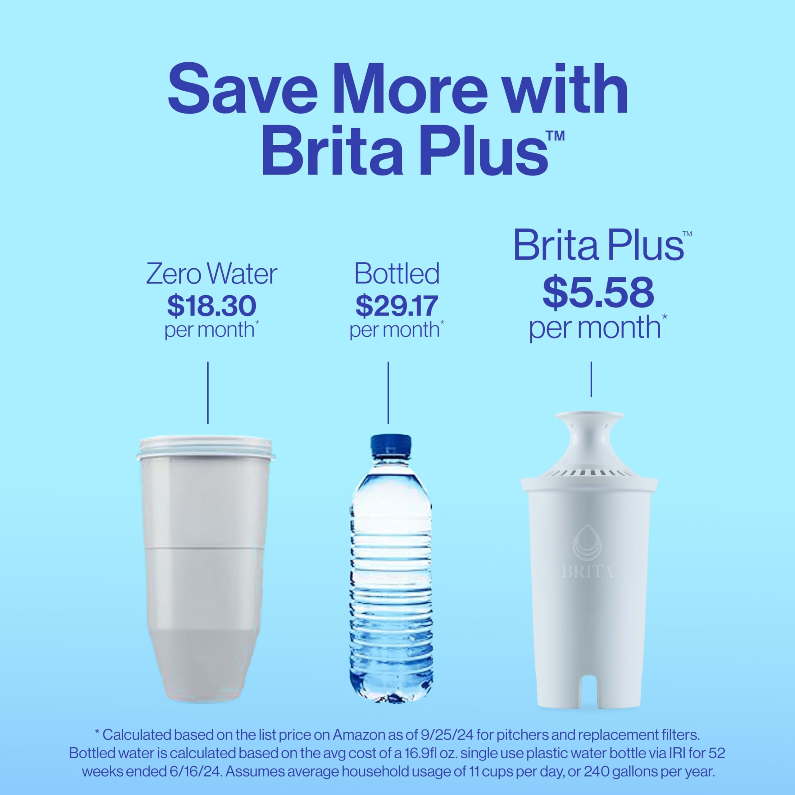 SAVE $240 A YEAR WITH BRITA*****: Never buy cases of bottled water again; when you switch to Brita, you are helping your family save $240 a year*****