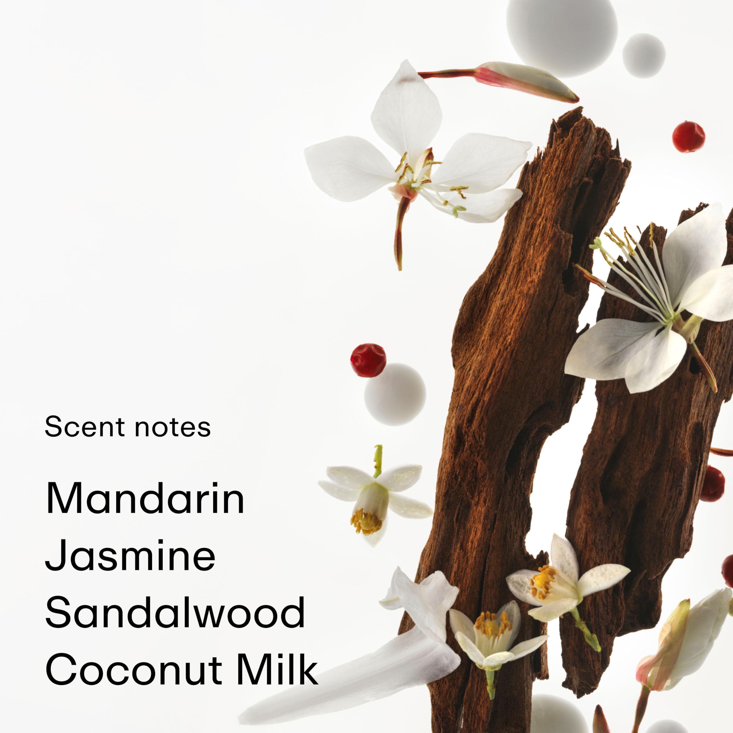 SCENT NOTES: Top: Mandarin Splash, Pink Pepper, Golden Pear. Heart: Orange Flower Water, Jasmine Blossom, Coconut Milk. Base: Benzoin, Sandalwood, Vanilla Cream.