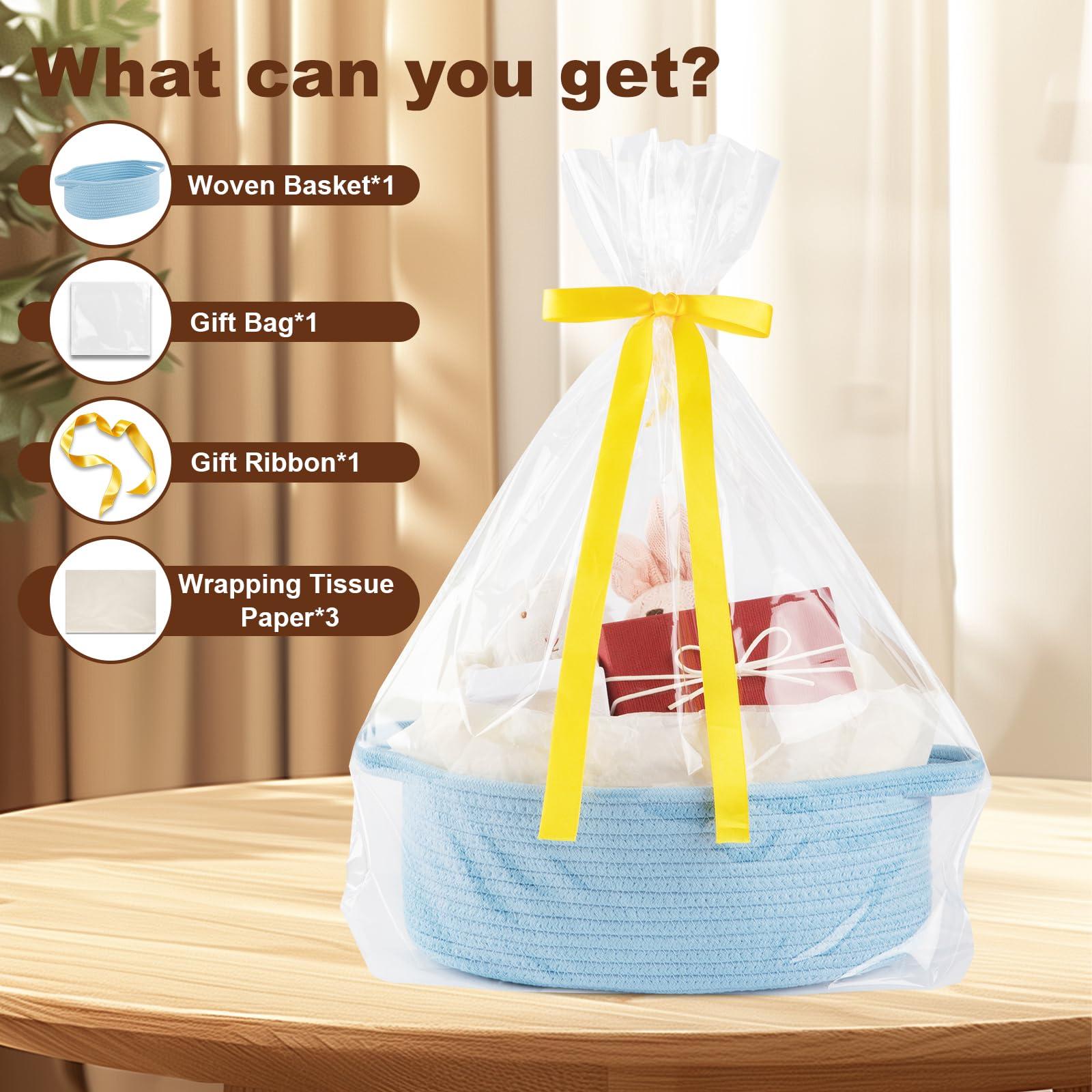 Ideal gift choice: This empty gift basket is cute and stylish, each small basket comes with a gift bag and ribbon, as well as 3 sheets of gift wrap tissue paper, which can better decorate, protect the stored items and can be used as a gift basket at any time