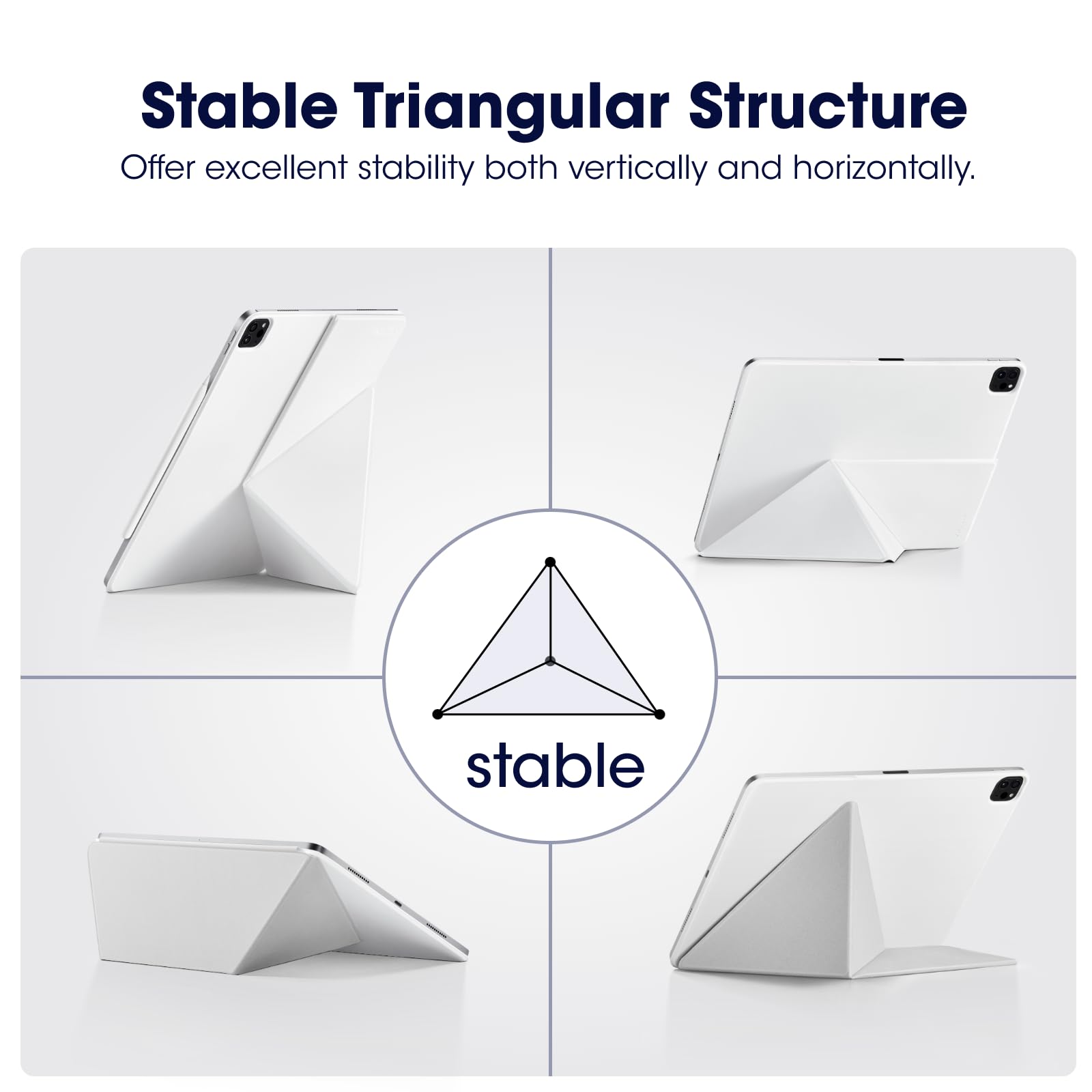 [4 Standing Angles] This iPad Pro 11 inch case can be folded in two ways, providing four different standing angles for taking Zoom calls, web browsing, drawing, etc. The triangle structure of the multi-fold folio ensures a stable standing position, whether in portrait or landscape.