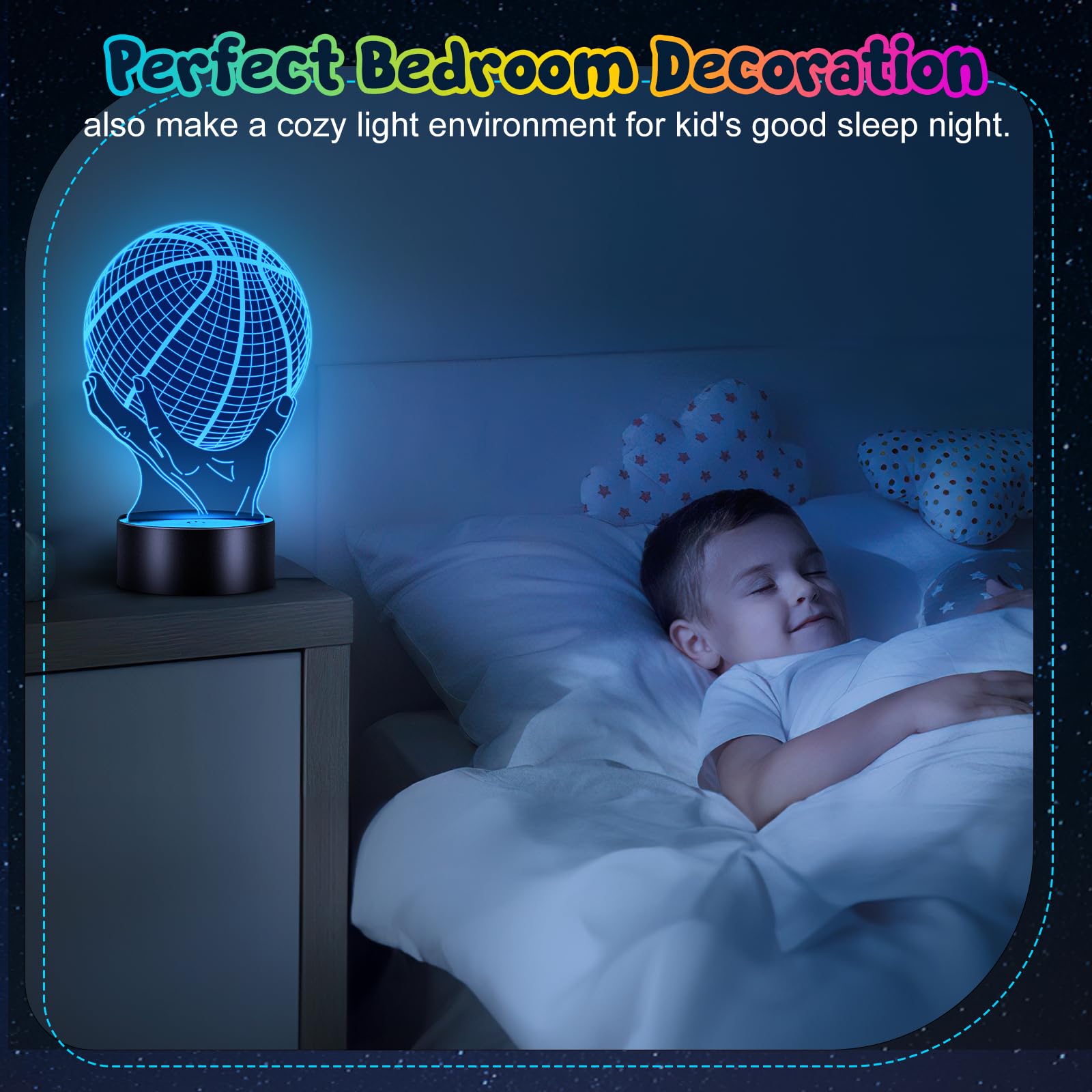 Dual Power Choice:Linkax light up basketball gifts 3D night lights were powered by USB cable(included) or 3 AA batteries(not included).Energy-saving,Eco-friendly.Two different charge modes meet your different need in different places.