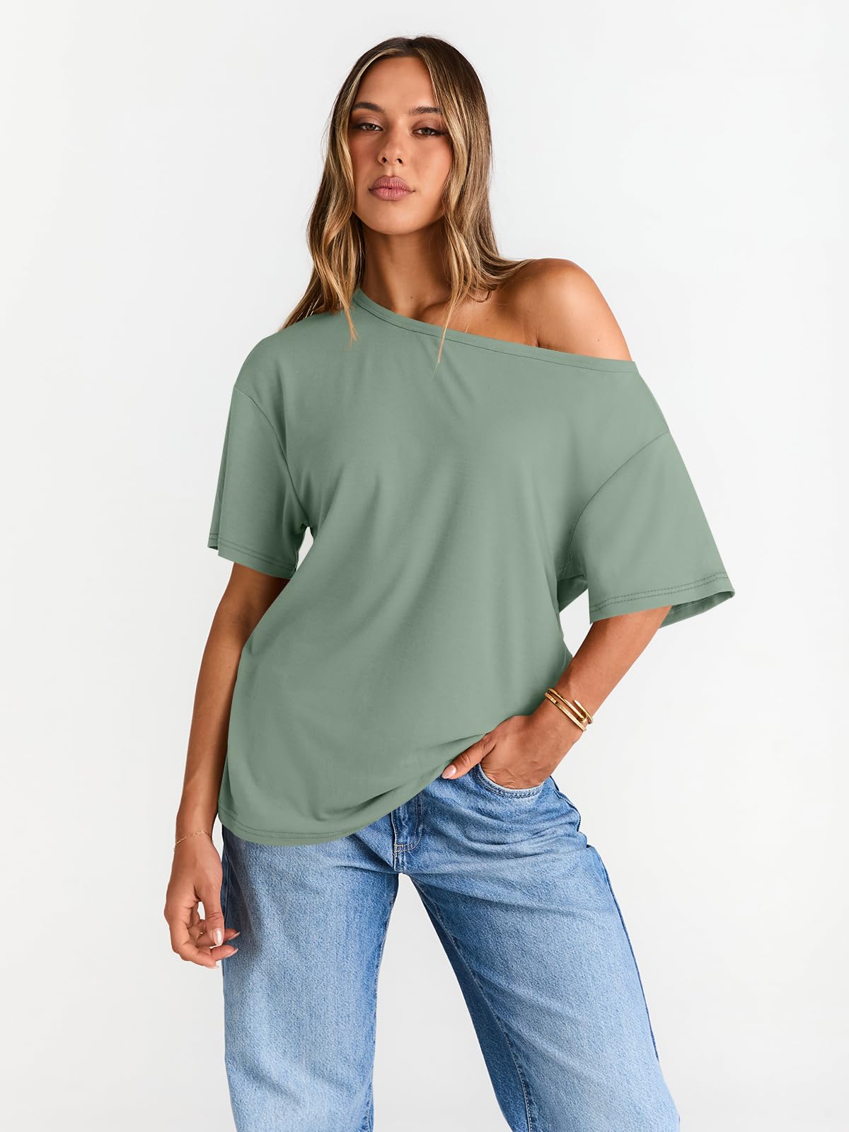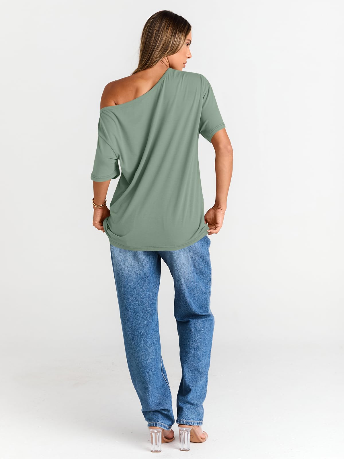 Design: The oversized tops for women feature an off the shoulder cut for femininity. This trendy fashion loose shirts for womens adds a good wearing experience, while the short sleeves ensure versatility