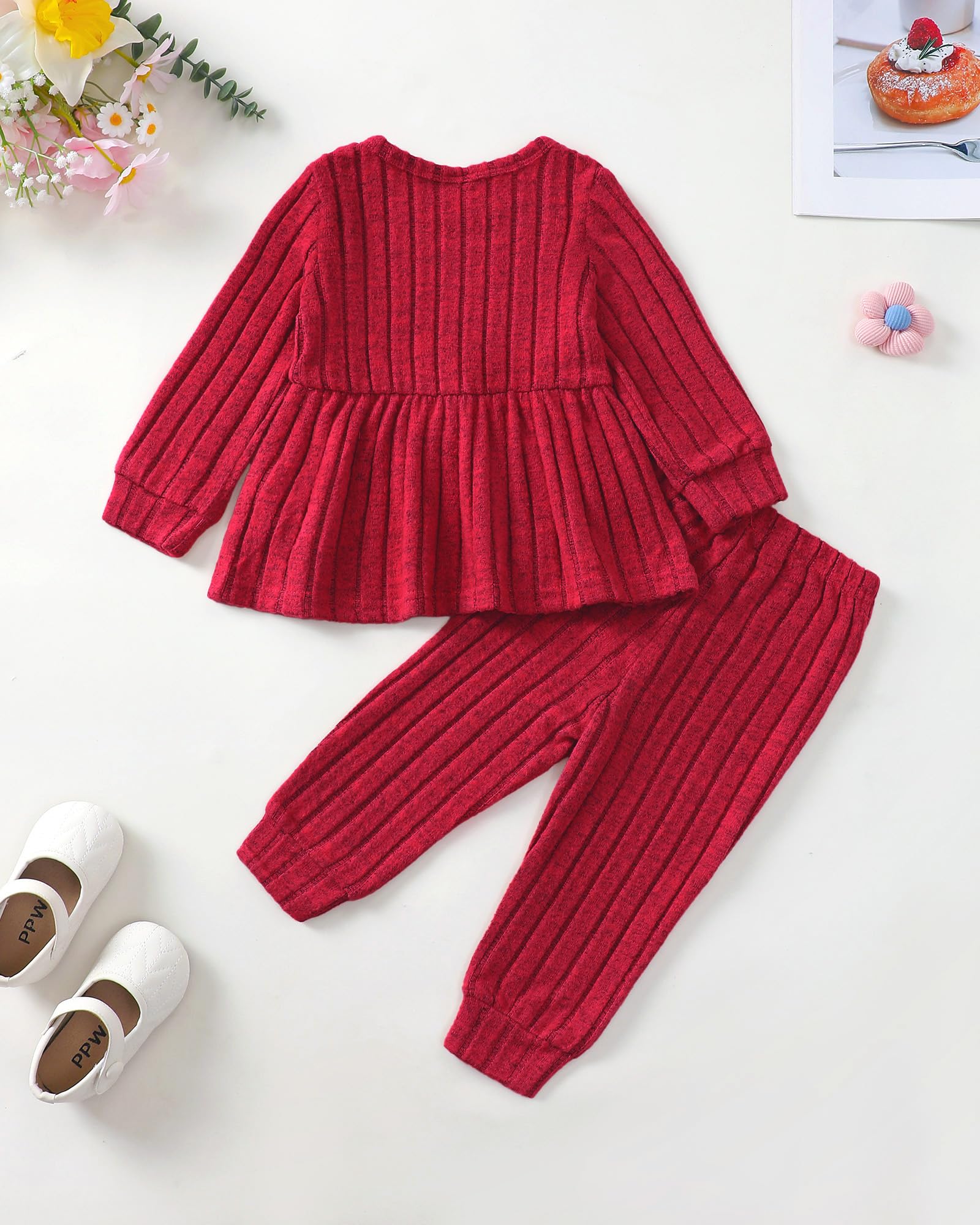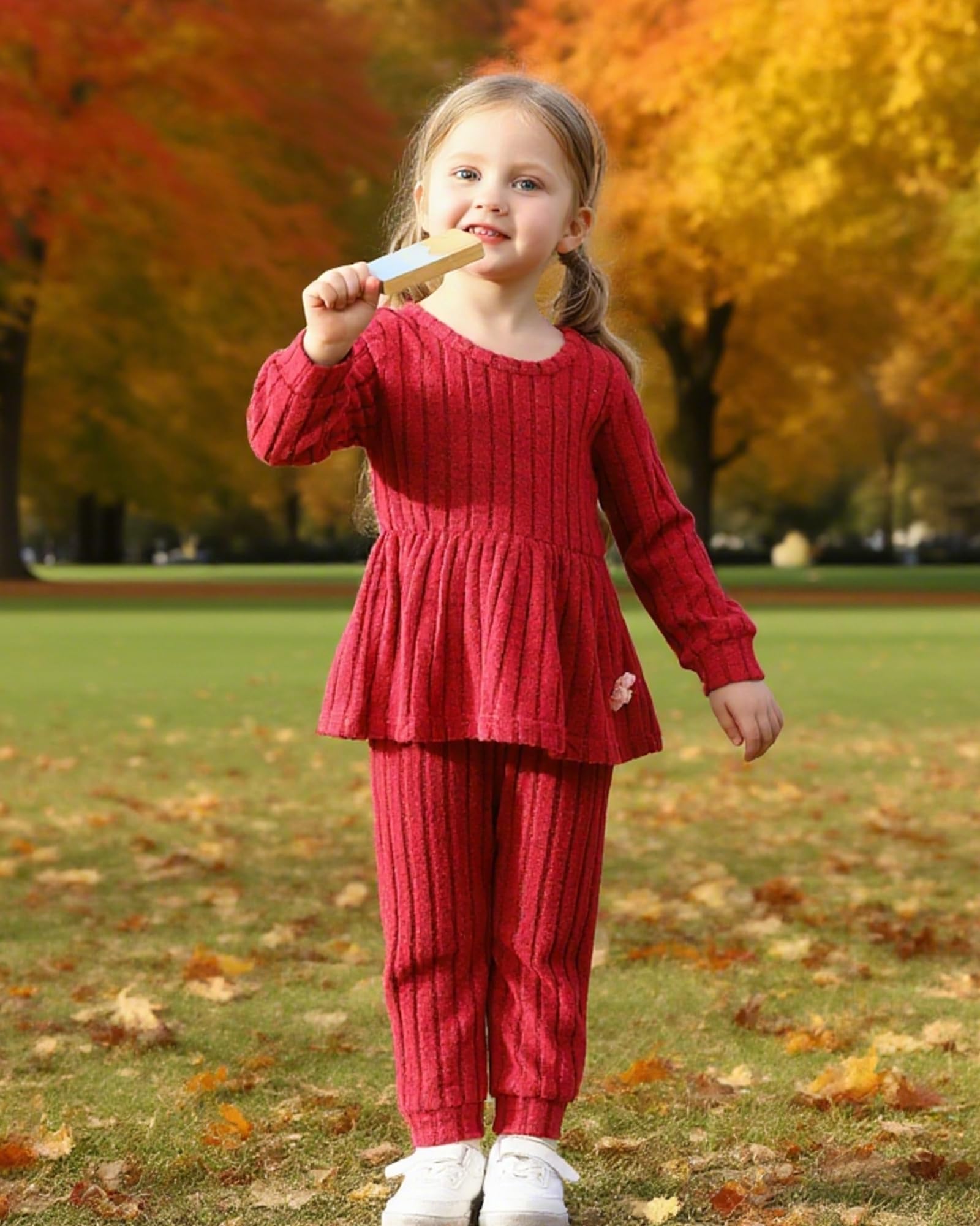 Occasion: Toddler girl clothes rib solid color pant sets suitable for fall winter daily wear, outdoor parties, playsuit, family gathering, photoshoot, and other festivals,etc