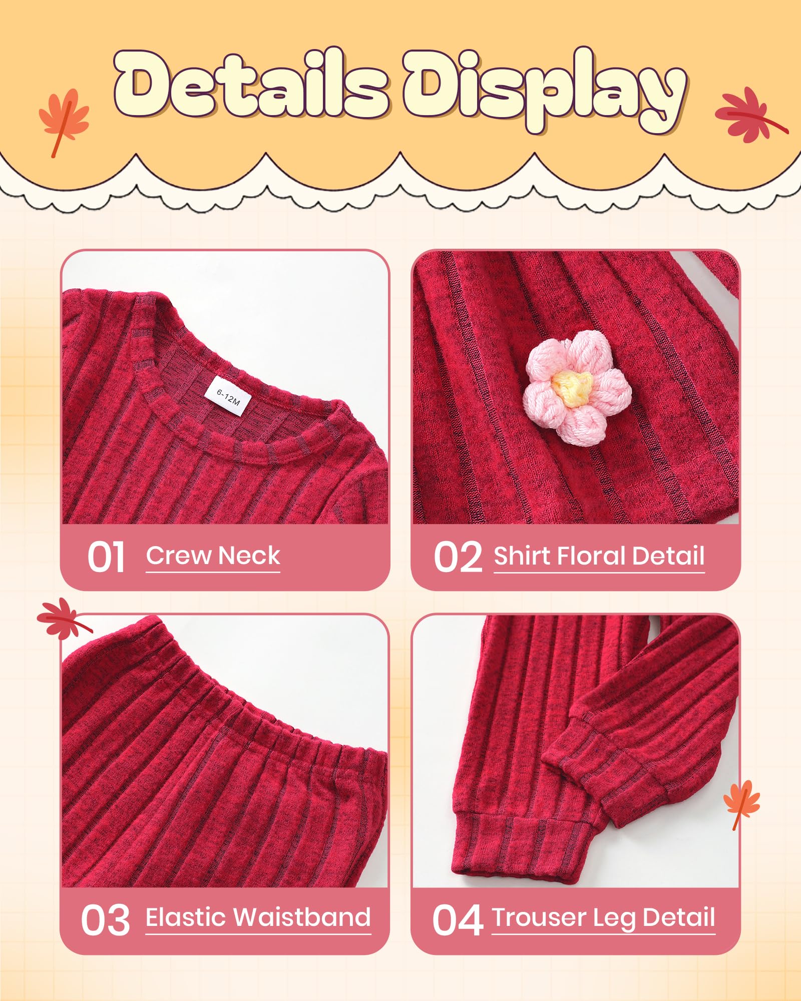 Package:the 2PC toddler girl fall outfits includes 1*sweatshirt top + 1*cute rib pants