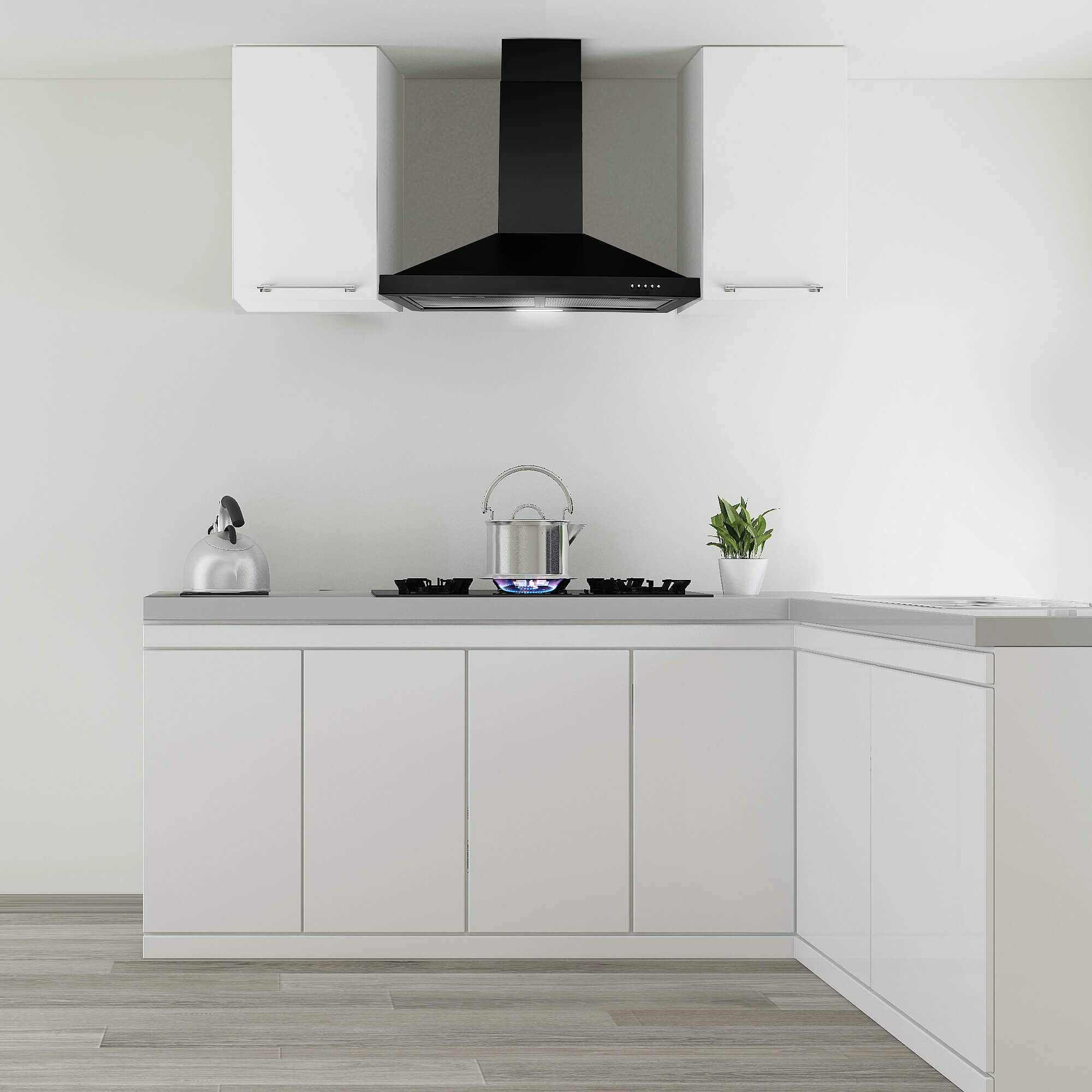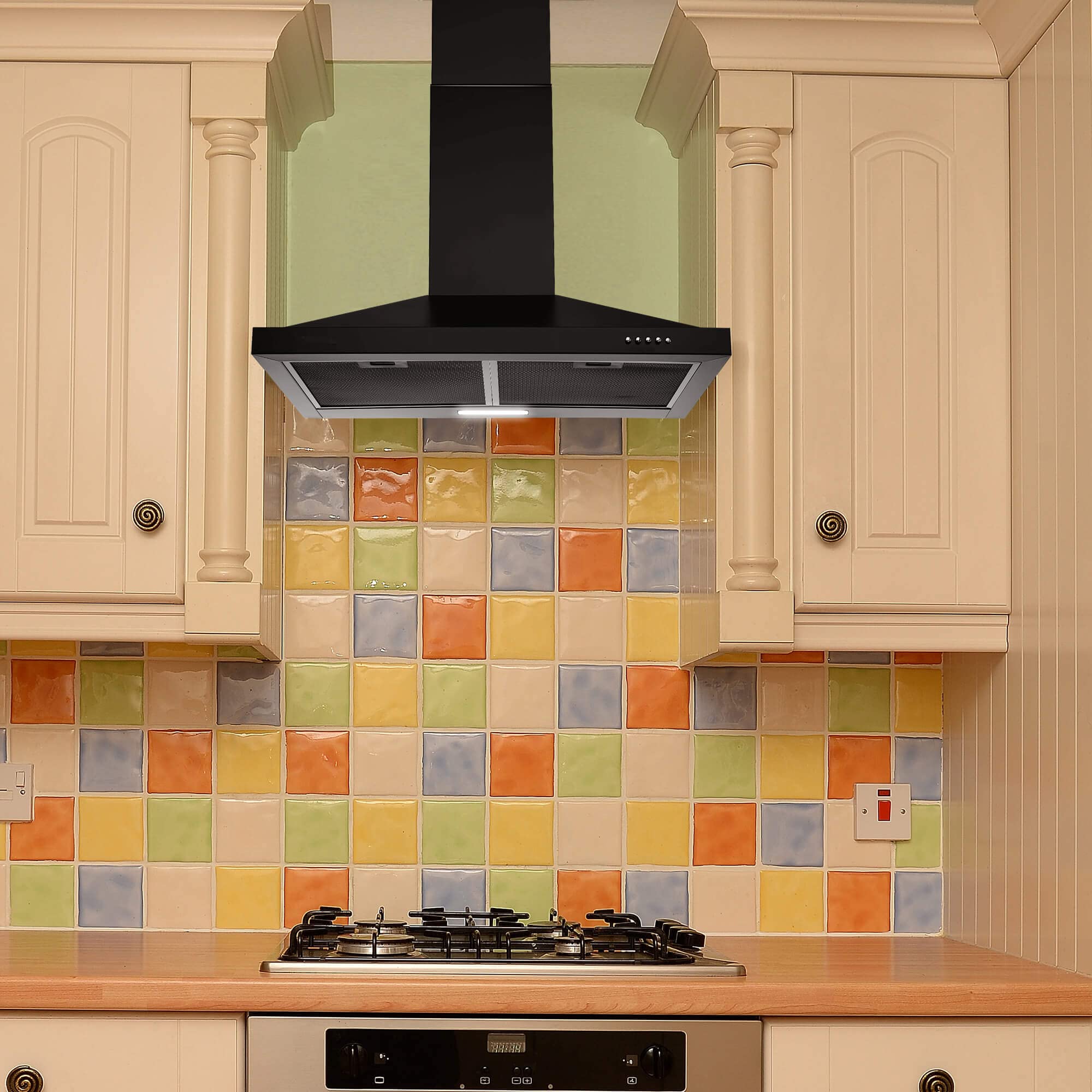 【PYRAMID-SHAPE CHIMNEY-STYLE RANGE HOOD】Classic look suitable for any kitchen style.This vent hood including two chimney covers, adjustable chimney hight from 15.4" to 29.2", fits 7.5-8.5 Ft. ceiling. Optional chimney extension for 9-Feet to 10-Feet ceilings (Sold Separately,Purchase Part # TD08-EXT-BK).