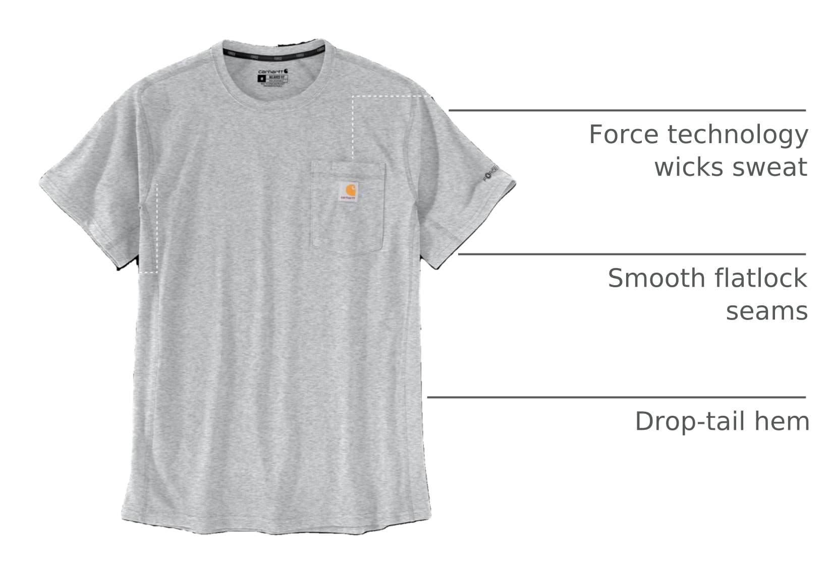 Description On the job or under the sun, this men's Carhartt t-shirt keeps you cool and comfortable. UPF-rated jersey fights off sweat and dries fast so you can stay focused on the task at hand. Ventilated panels keep the air circulating, and a drop-tail hem provides extra coverage.