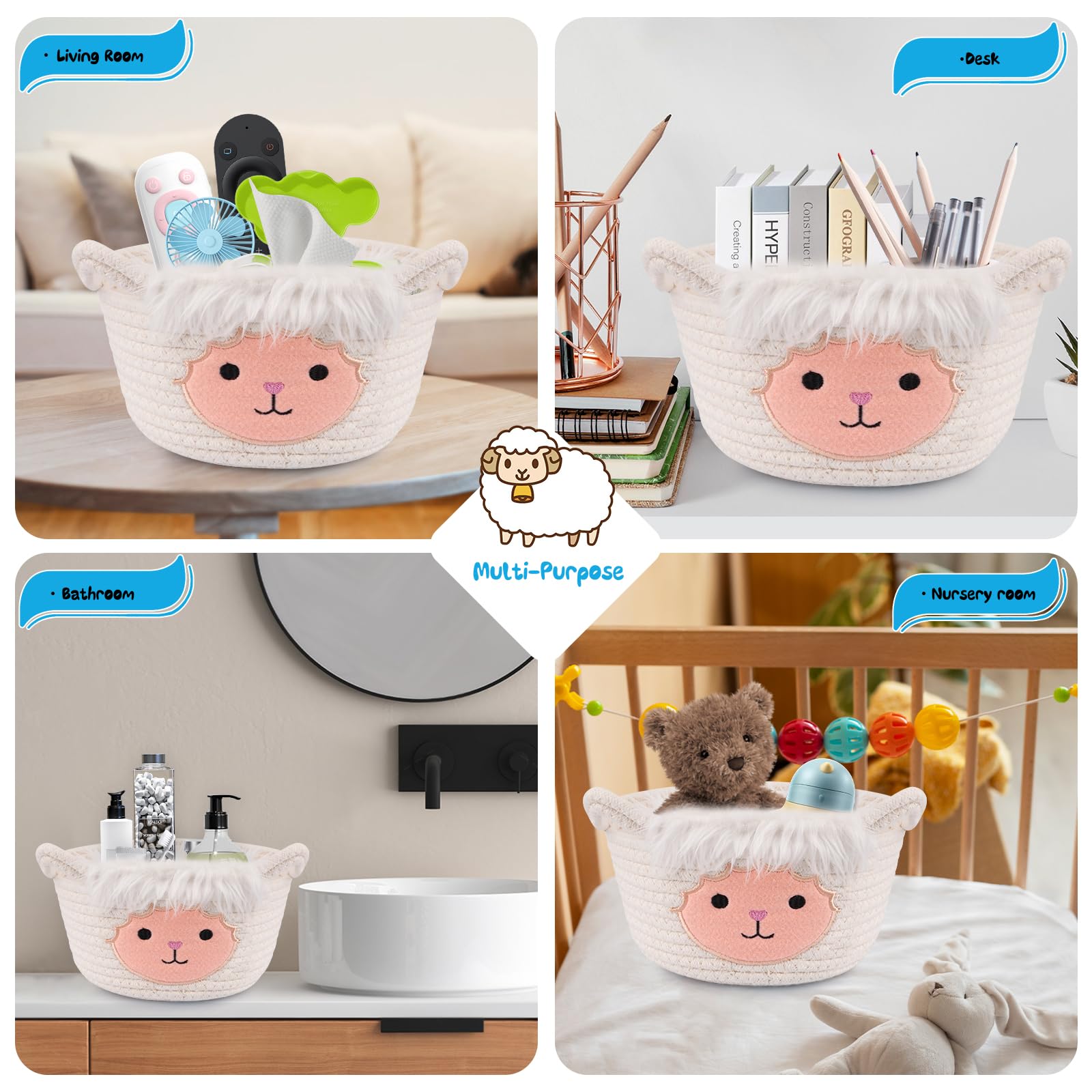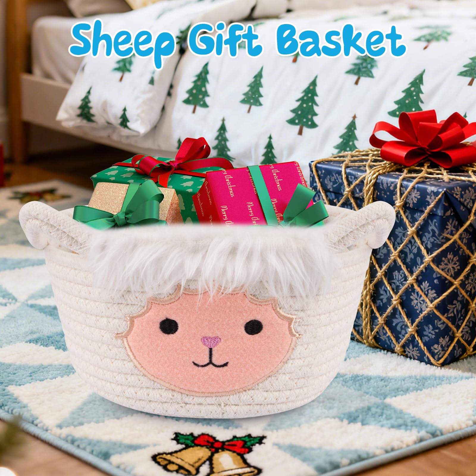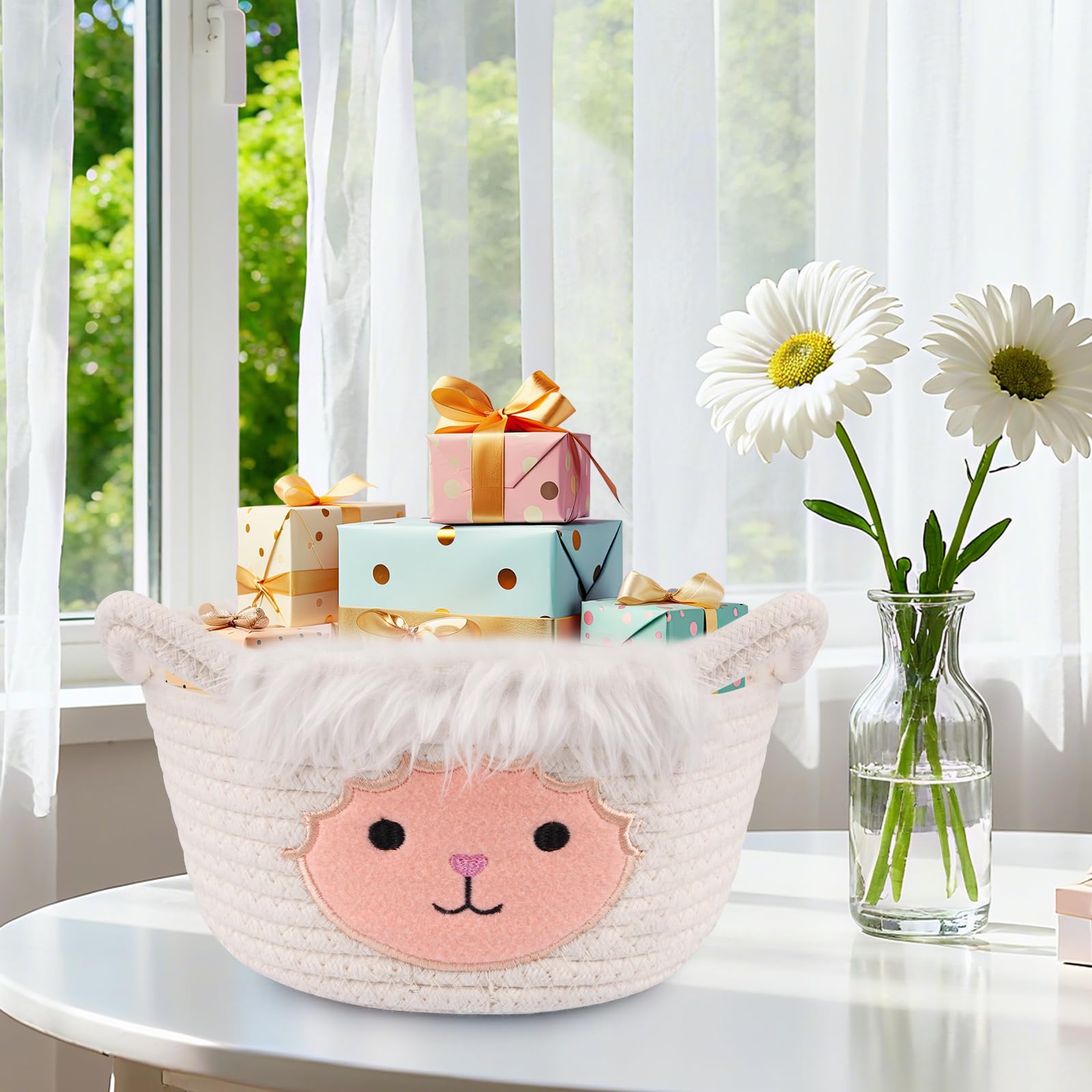 Soft Sheep Gift Basket: Our sheep basket is made of soft woven cotton rope with a lovely embroidered sheep face, this basket is skin-friendly and odorless. Its cute design stays clean easily, making it a perfect and practical gift for any occasion.