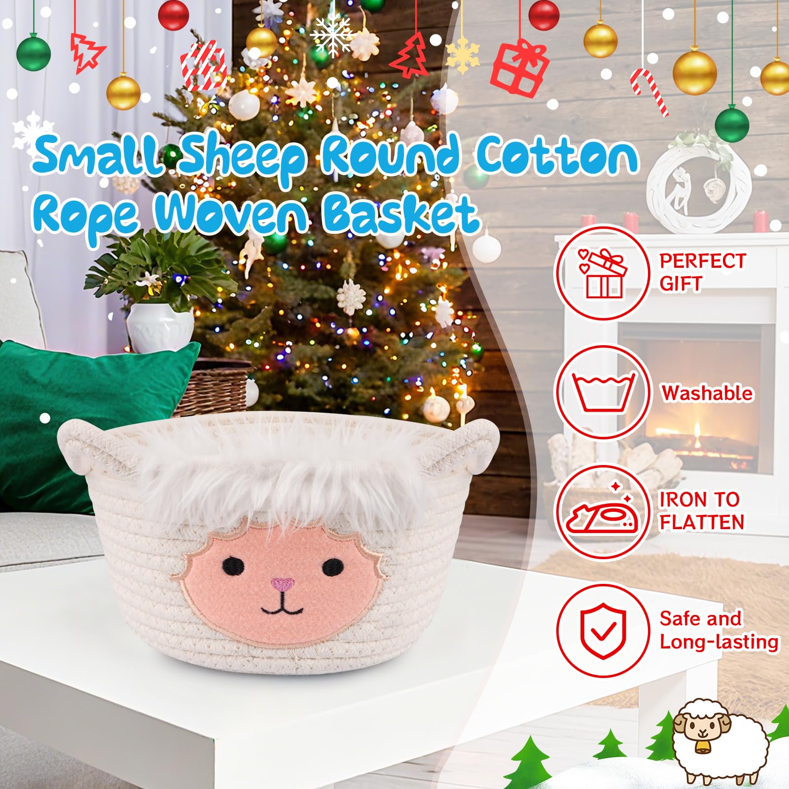Product: Sheep Cute Woven Basket Feature: Size: 8.2(W) x 4.7(H) inches Color: White Red Shaped: Sheep Basket Decor Material: Made of woven cotton rope, soft to touch, reinforced stitching Fuctions: ๐Ÿ‘ Cute Sheep Storage Basket - As a Baby Storage Basket Organizer for Your Little One! ๐Ÿงบ 1.Small storage basket. soft woven cotton with a charming embroidered sheep face, this lovely basket adds a touch to any space. Its sturdy handles are shaped like sheep ears, making it easy to carry around. Perfect as a baby diaper caddy, little cat bin, or nursery decor โ€” use it to store diapers, blankets, baby clothes, cosmetics, and more! ๐ŸŒŸ 2.Gentle on skin and easy to clean, itโ€™s both functional and decorative. A wonderful gift for baby showers, birthdays, or housewarming parties. Foldable and space-saving! ๐ŸŽ๐Ÿ’• 3.Easy to clean and quickly folded back to its original shape. Our high quality baskets are the perfect gift for many different occasions like birthdays, weddings, baby showers, housewarming gifts, and so on.